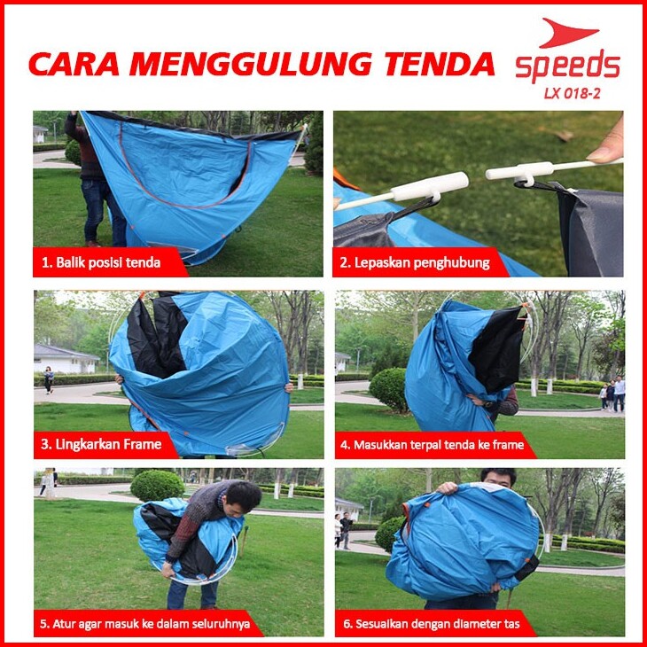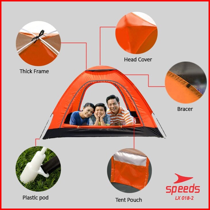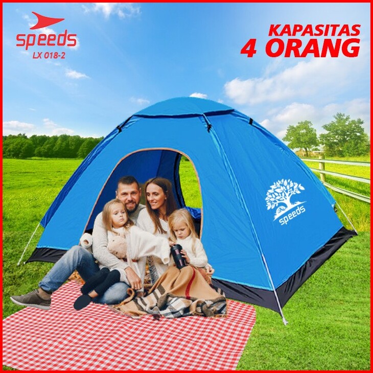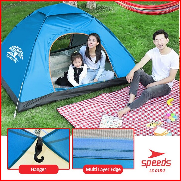Speeds Tenda Camping 2mx2mx1.3m 2 Pintu Buka Otomatis Tenda Lipat 018-2
