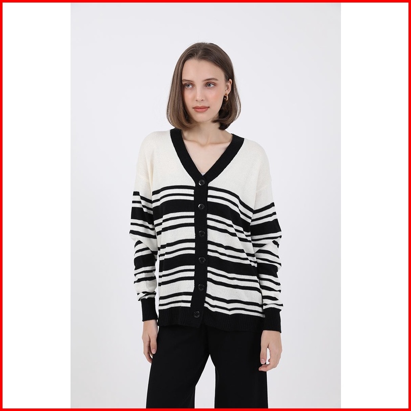 Berrybenka - Atasan Swater Rajut Sofia Melanie Stripes Knit Cardigan