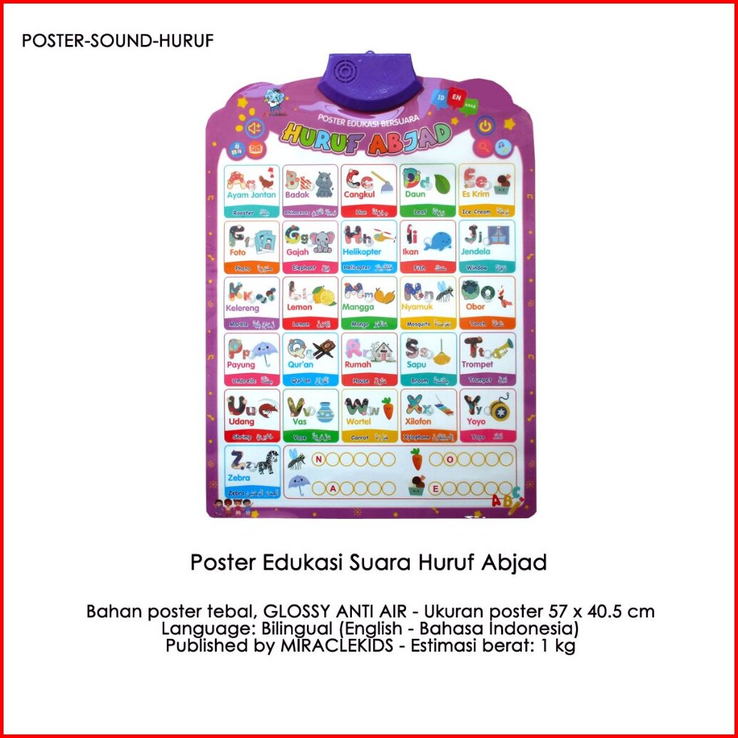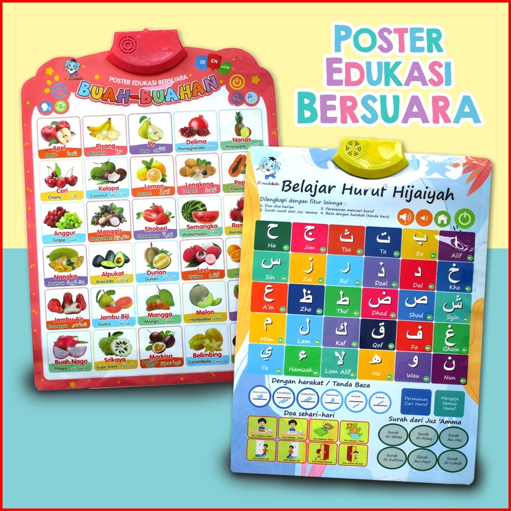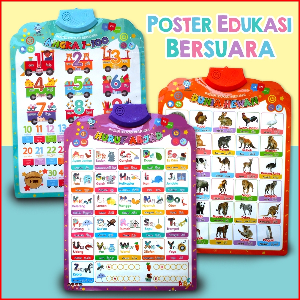 Poster Edukasi Suara Huruf Angka Buah Hewan Hijaiyah Gratis Bonus Baterai Spidol Wipe-clean