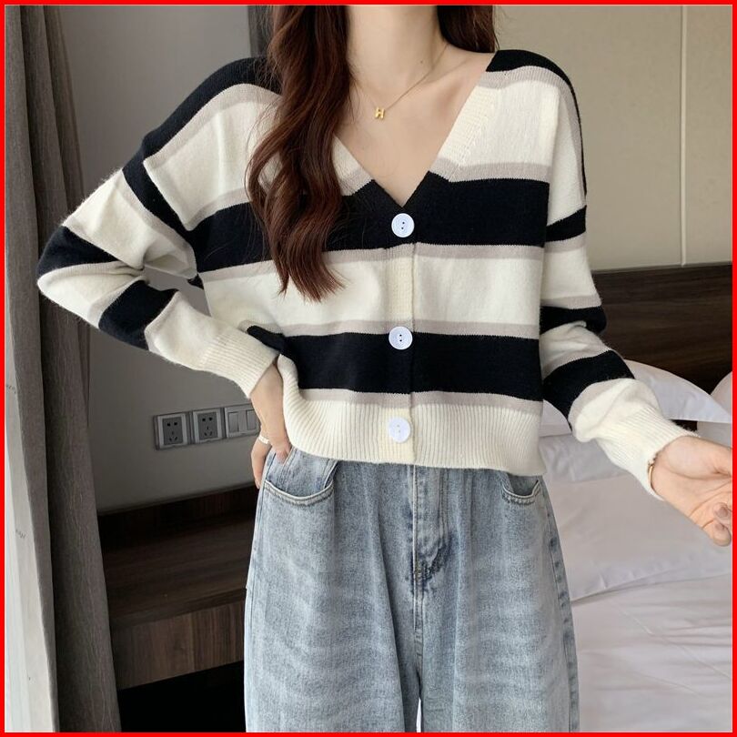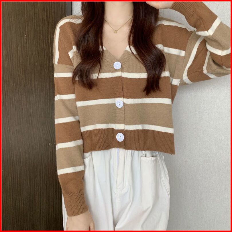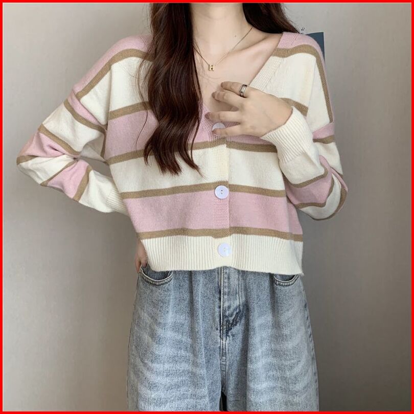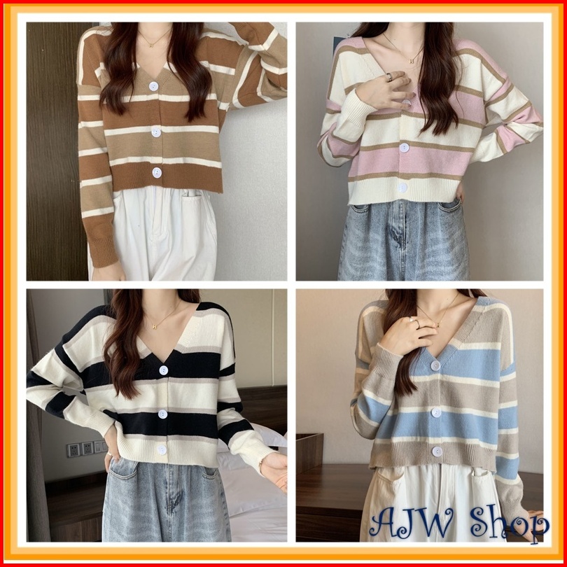 Ajw Cardigan Crop Rajut Korean Style Wak Cardigan Stripe Wanita Kekinian Rajut Import Premium Atasan Wanita Cardigan Raj