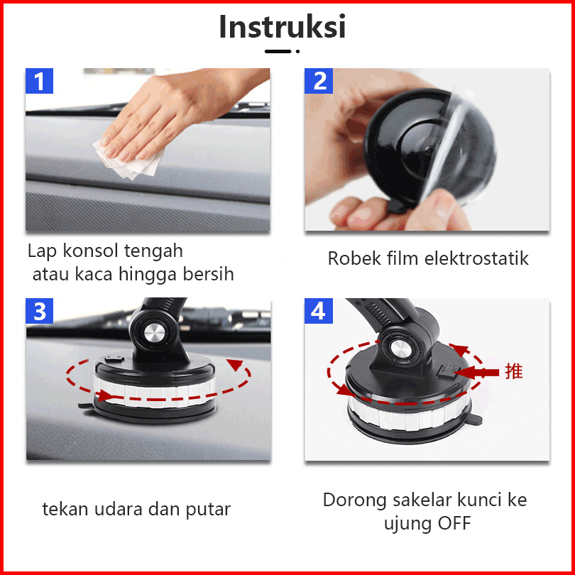 Zacro Original Holder Hp Mobil 4 In 1 Dudukan Handphone Universal Untuk Pemasangan Di Dashboard Kaca Meja Lemari Bisa Po