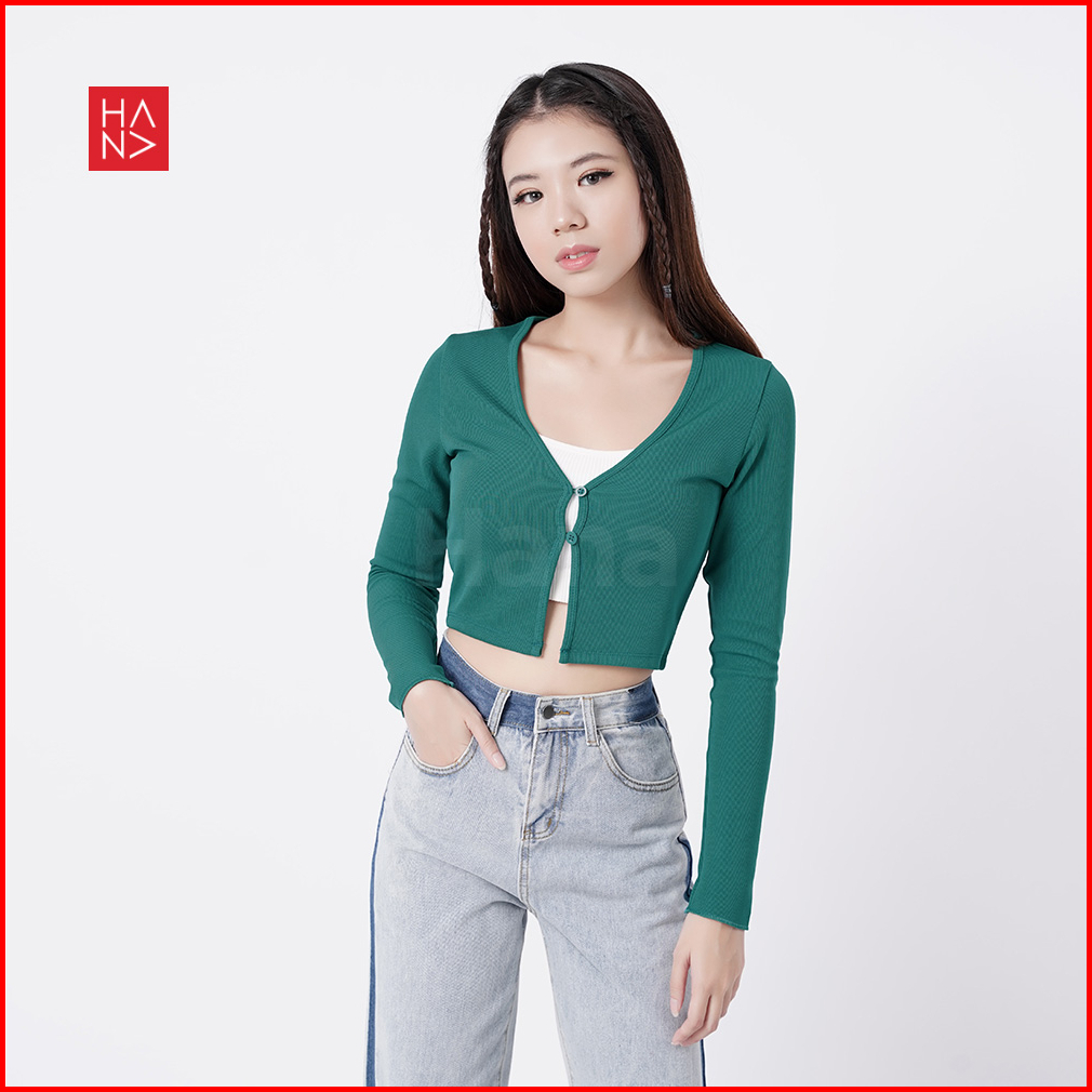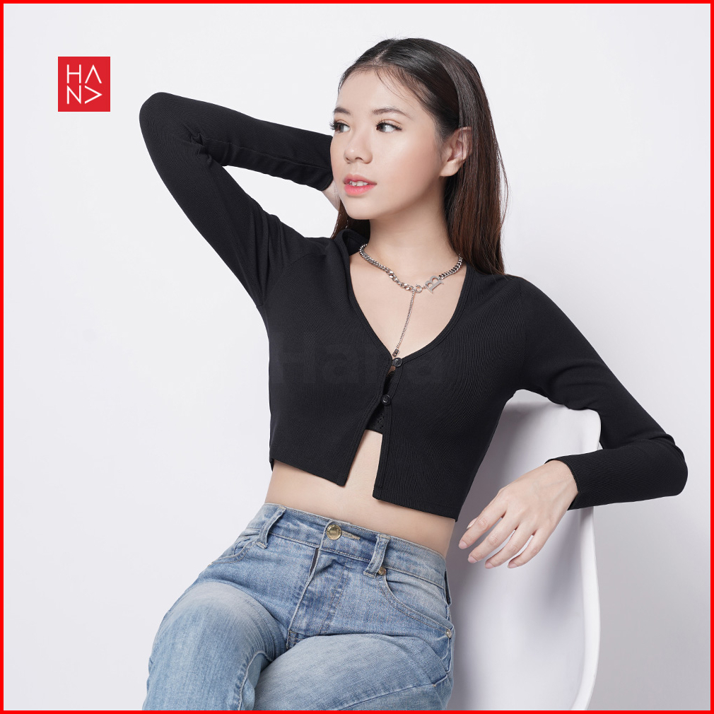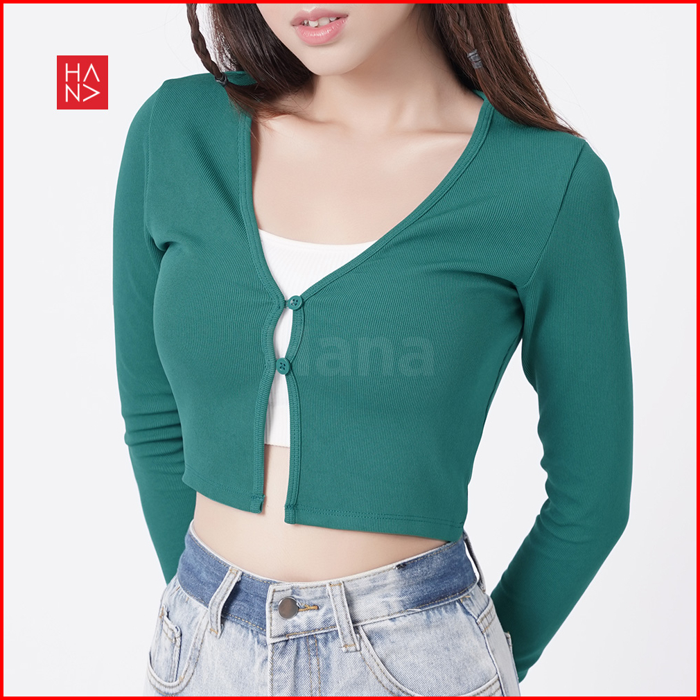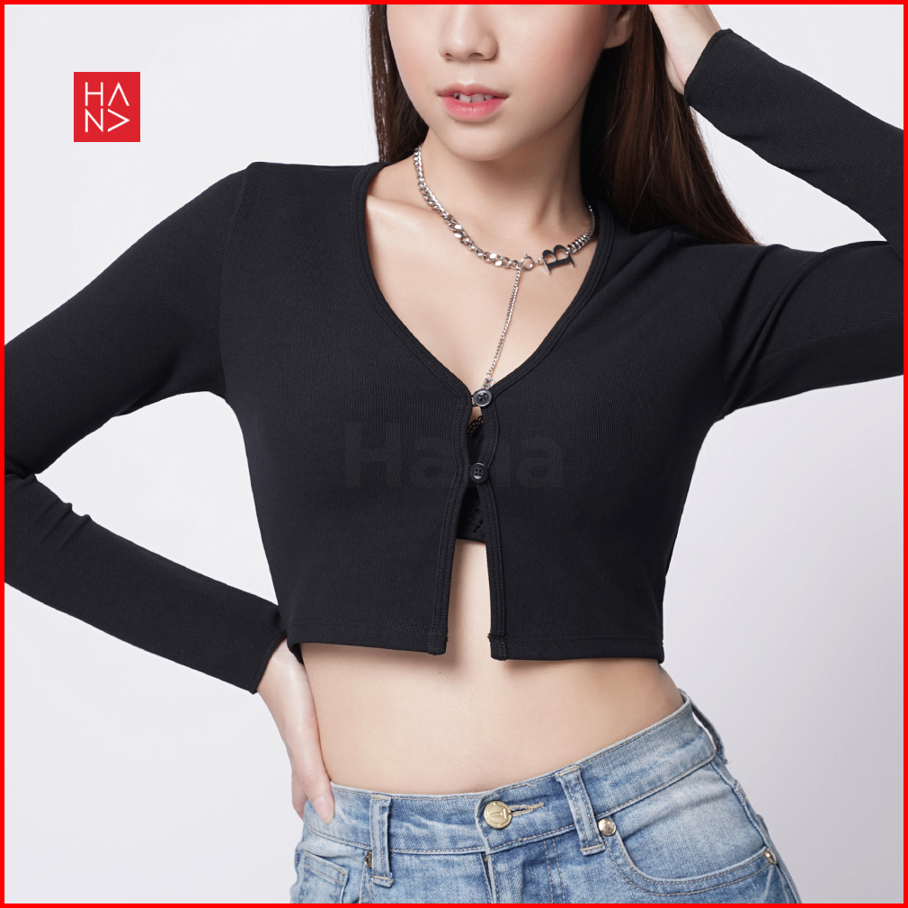 Hana Fashion - Vanessa Crop Top Rib Knit Cardigan Long Sleeve - Ct334