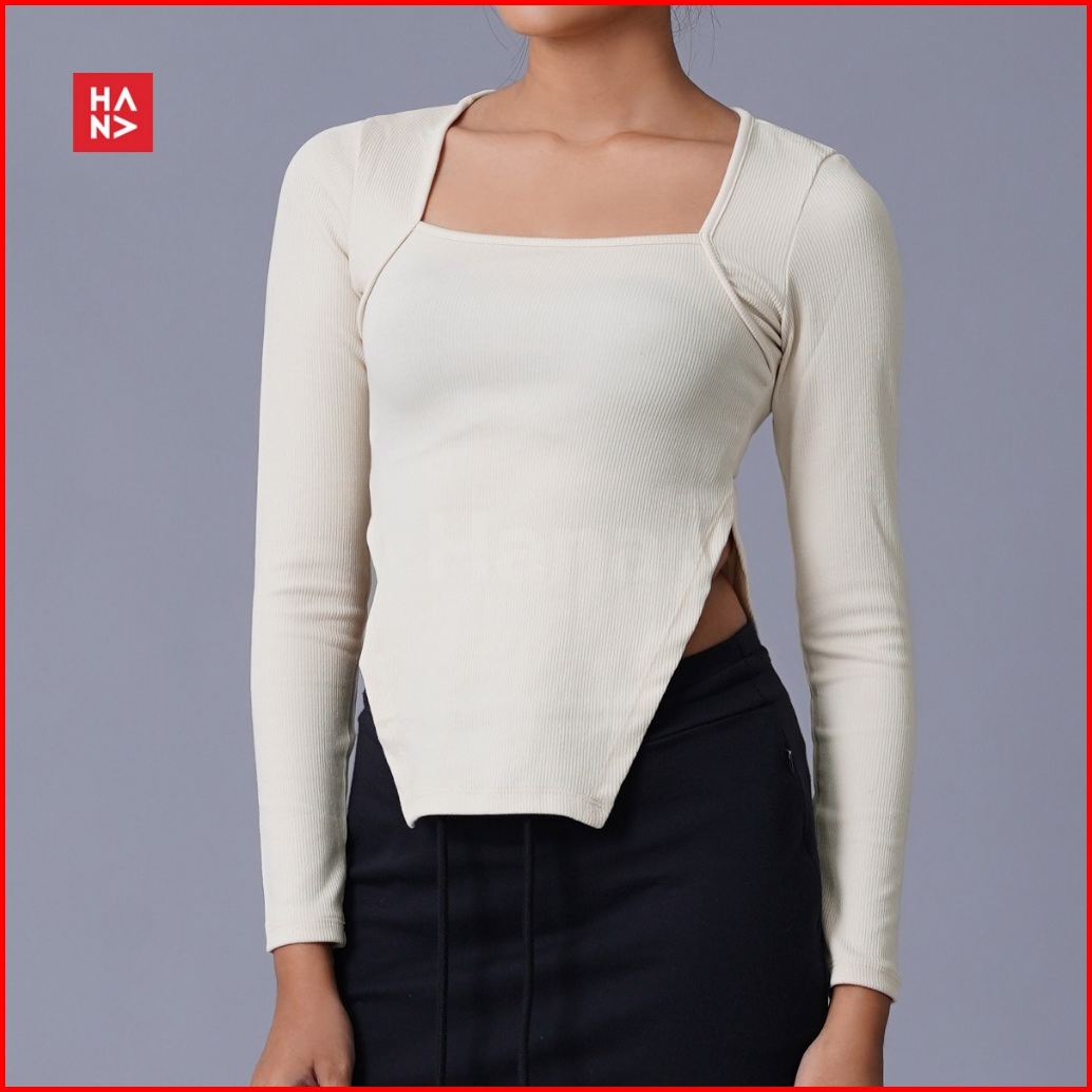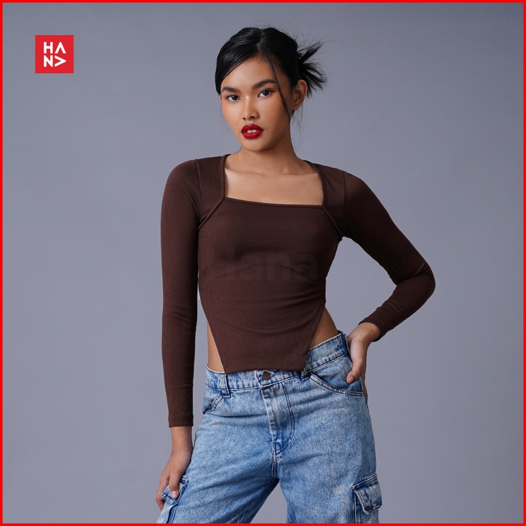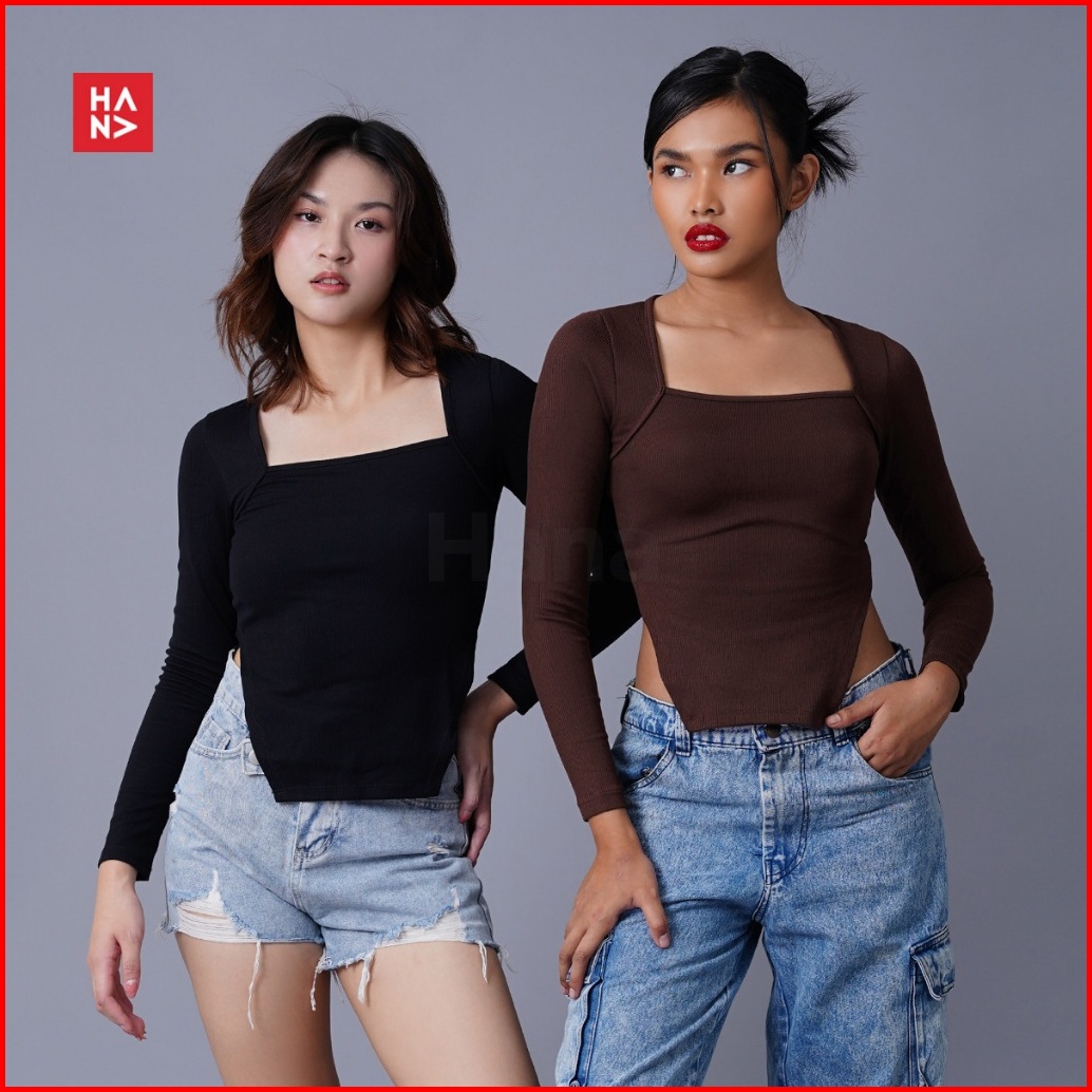 Hana Fashion - Nesya Crop Top Long Sleeve Atasan Wanita Lengan Panjang Korean Top - Ct325-2