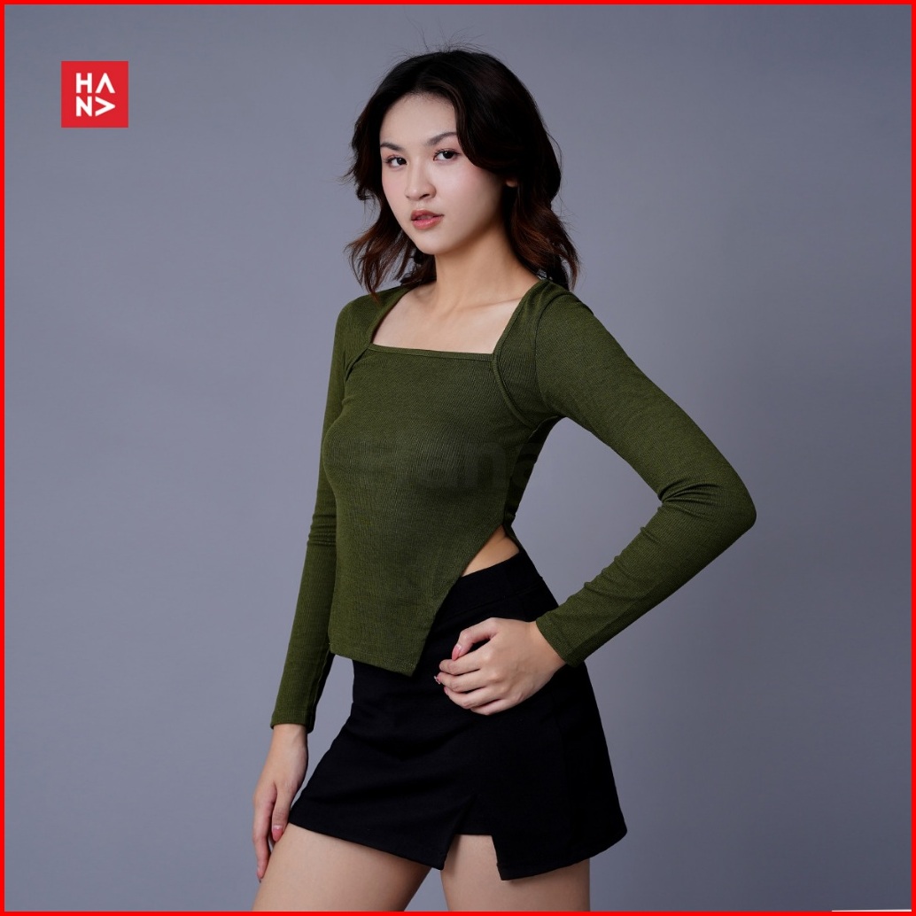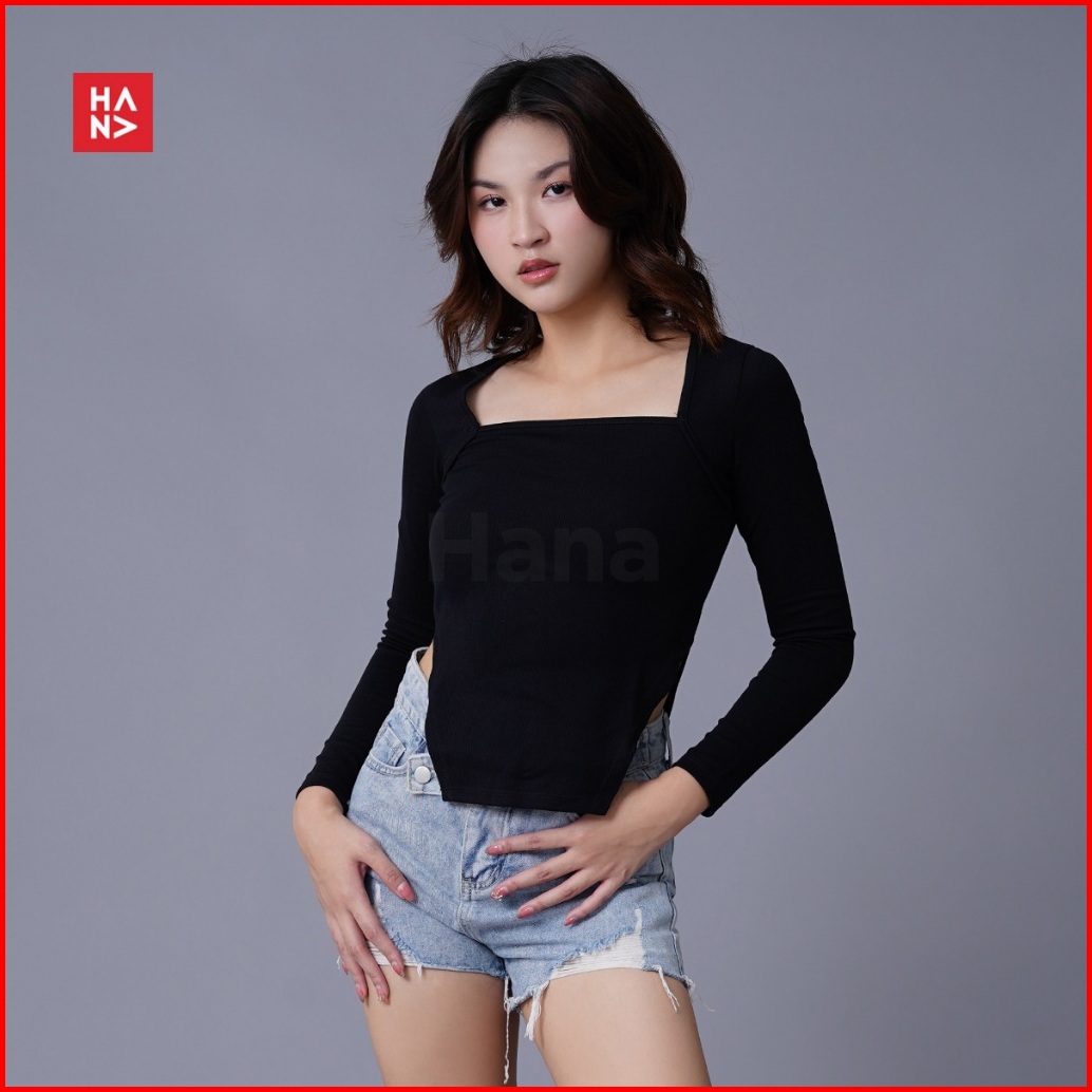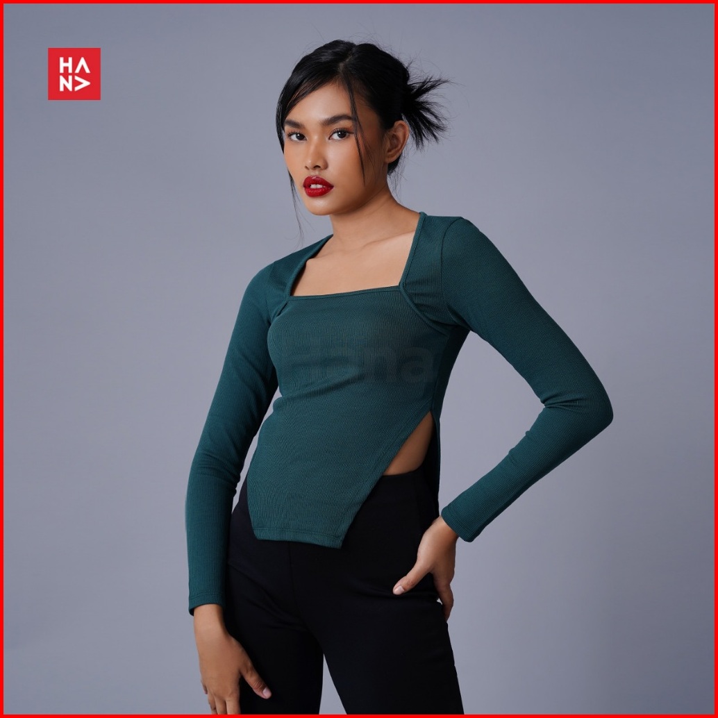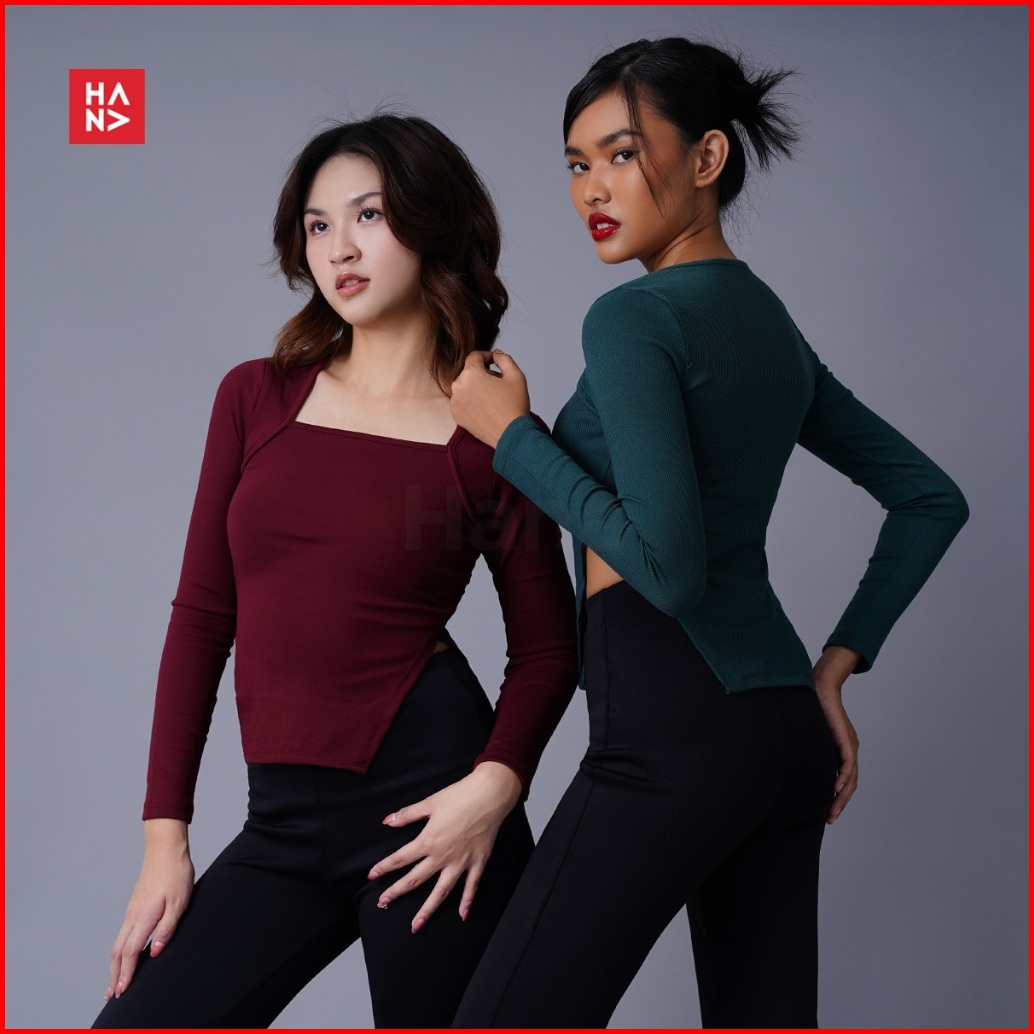 Hana Fashion - Nesya Crop Top Long Sleeve Atasan Wanita Lengan Panjang Korean Top - Ct325-2