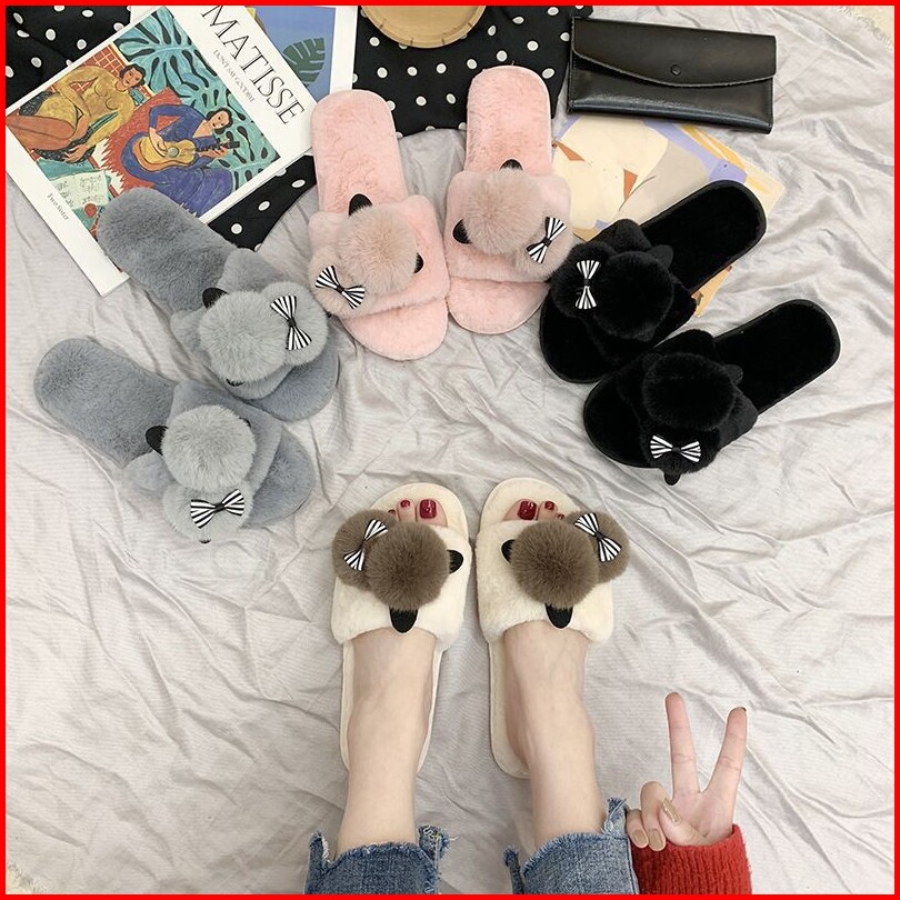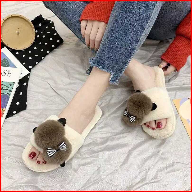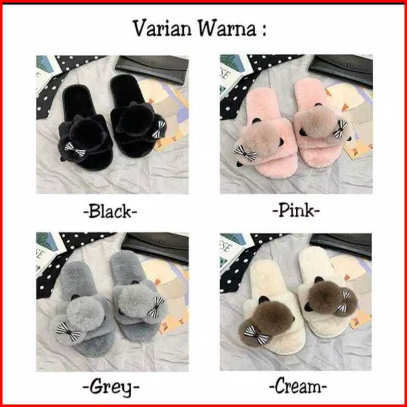 Sandal Sendal Rumah Empuk Hangat Boneka Kucing 3d Timbul Lucu Model Slide Selop Karet Anti Slip