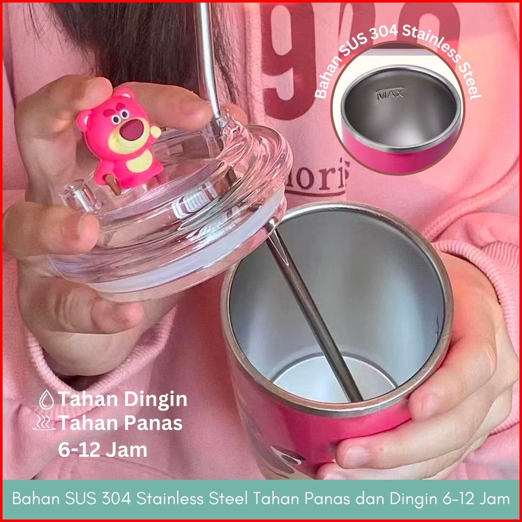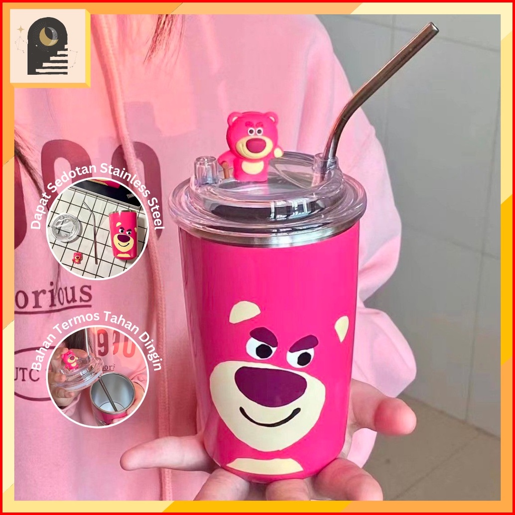 Either.id - Termos Tumbler Minum Lotso 500ml Strawberry Bear Termos Botol Minum Lotso Dengan Sedotan