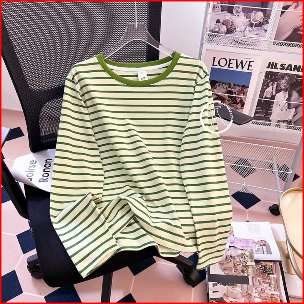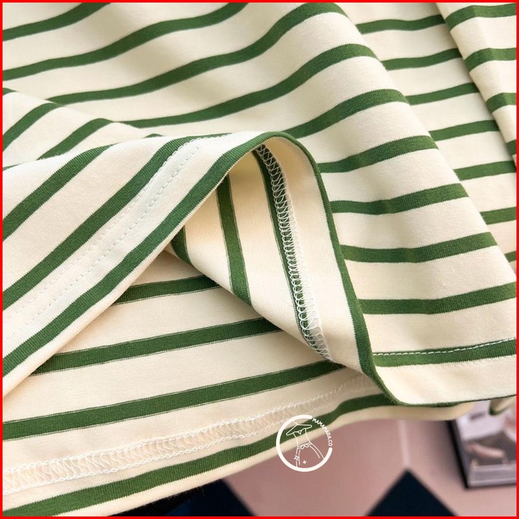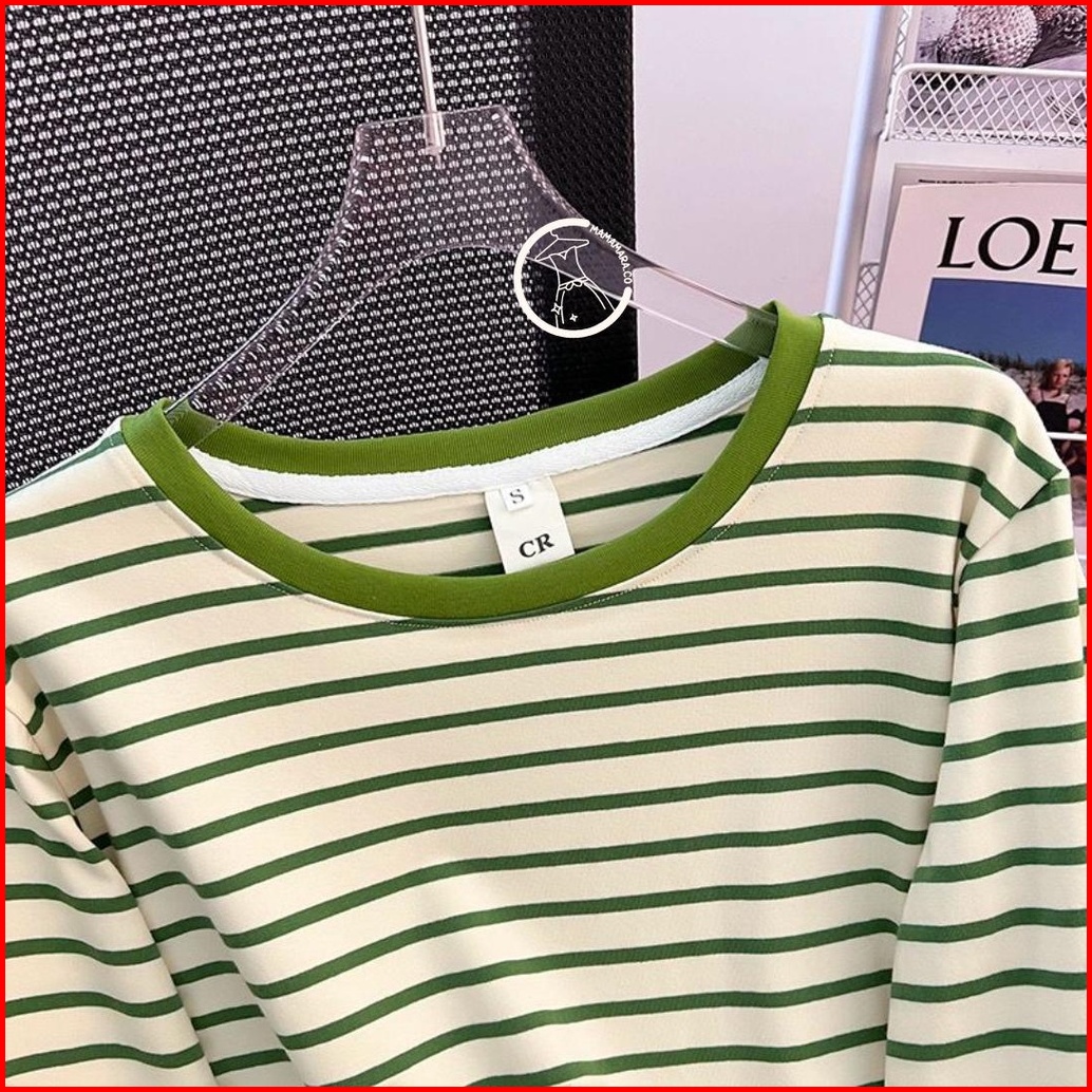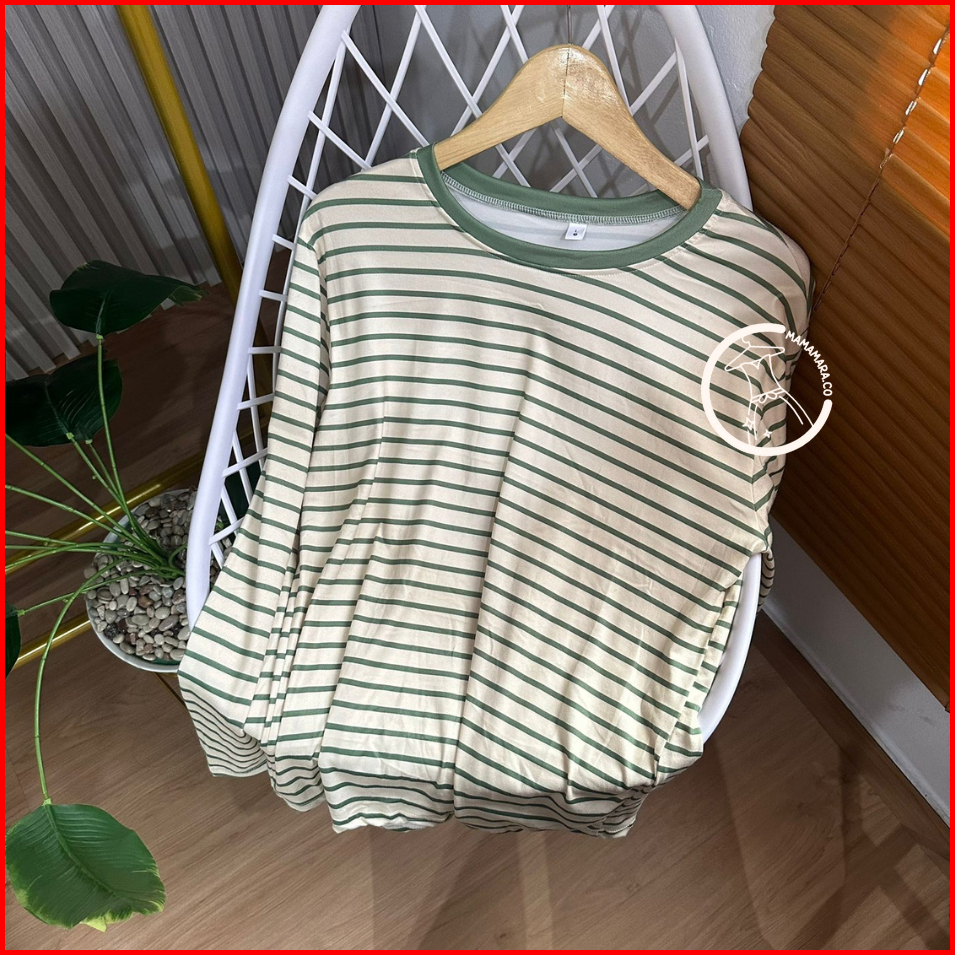 Mamamara - Atasan Kaos Garis Stripes Salur Putih Santai Hitam Simple Elegant