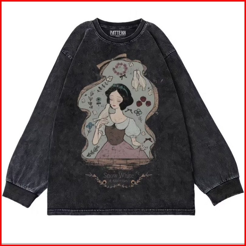 Kaos Oversize Oversize Longsleeve T-shirt Oversize Washing Kaos Snow White Classic Retro