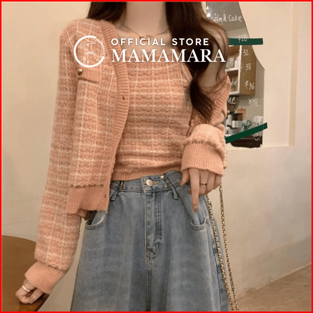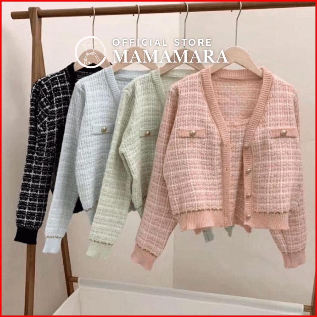Mamamara - Cardigan Wanita Pastel One Set Korean Style Sweater Rajut Knitwear Outer