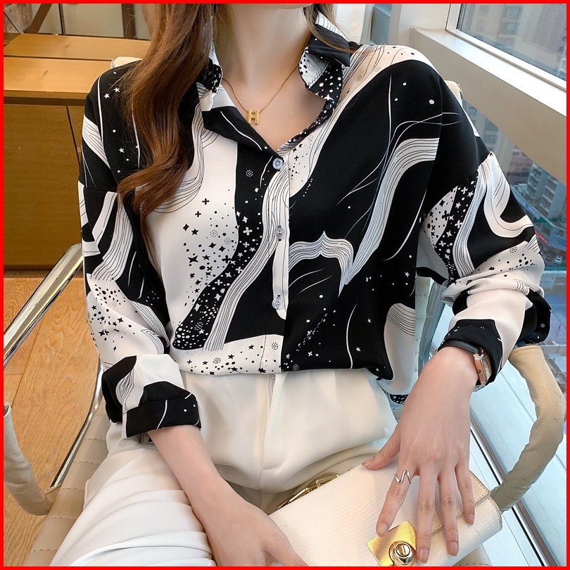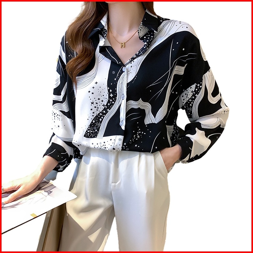 Kualitas Tinggi Garis-garis Hitam Putih Kemeja Wanita Lengan Panjang Fashion Atasan Kasual Jalanan Korea