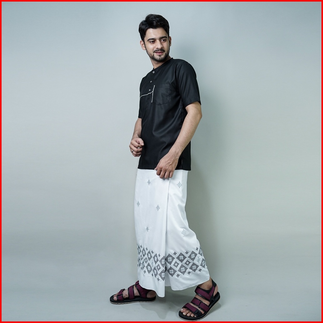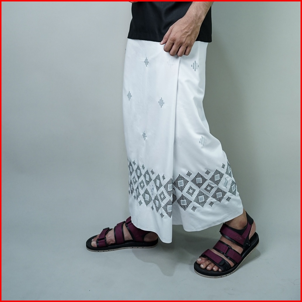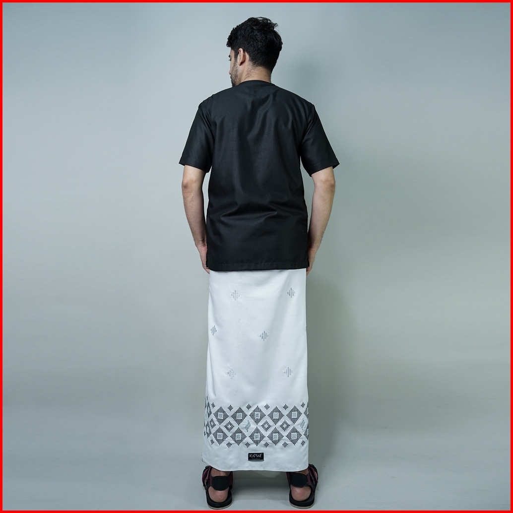Katsae - Sarung Bordir Motif Sunan Bordir Timbul Sarung Pria Dewasa Warna Putih Sarung Sholat 100 Bordir