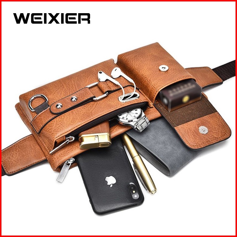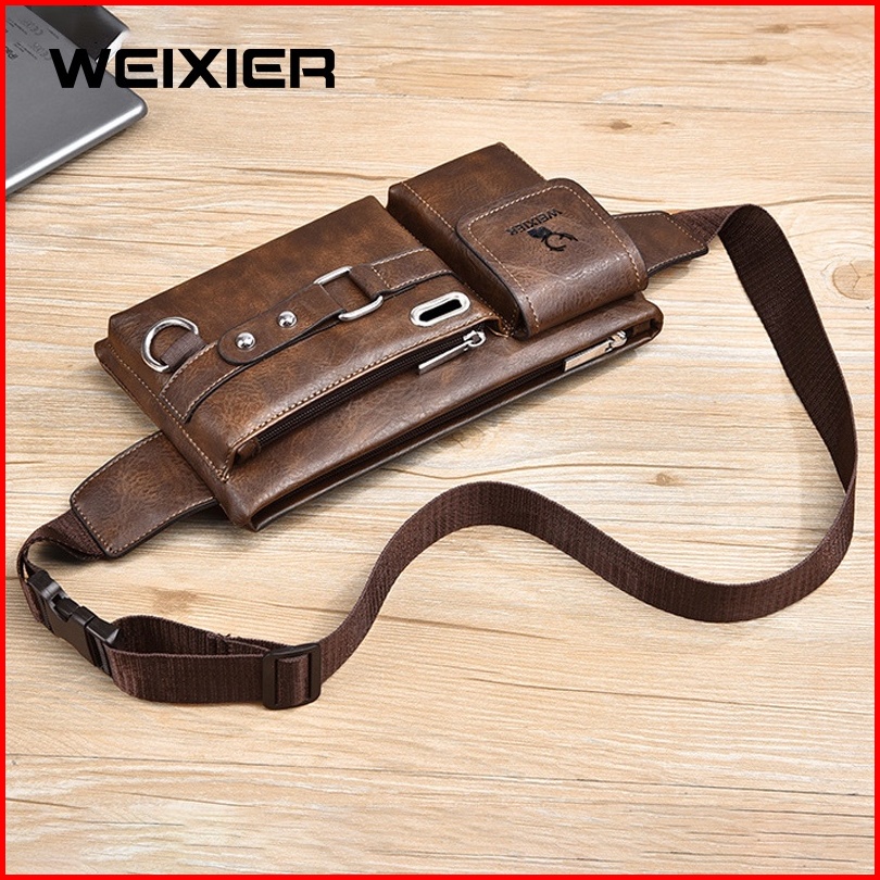 Weixier 8110 Tas Selempang Pria Kulit Waistbag Anti Air Wk-sby