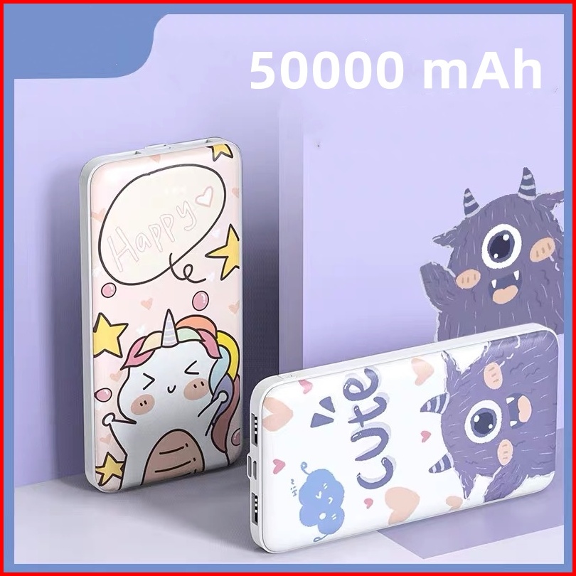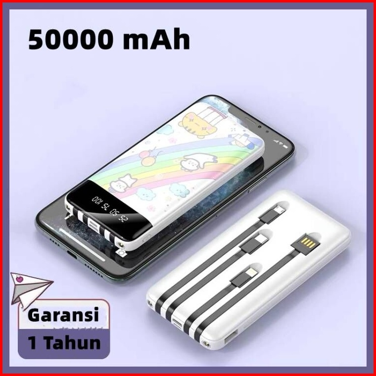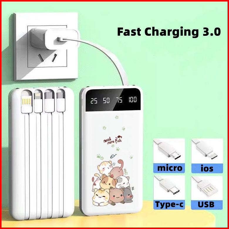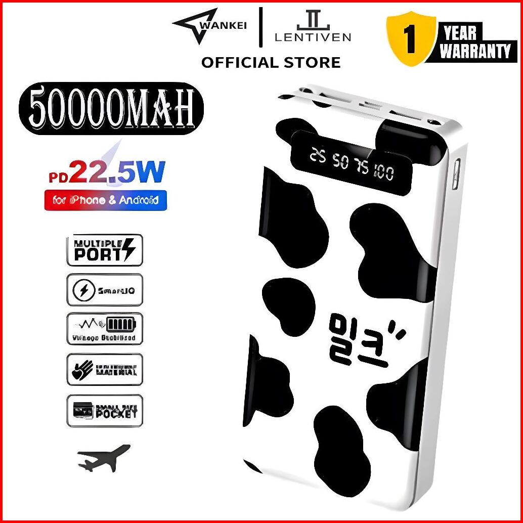 Wankei Lentiven Powerbank 50000mah 4 Cables Cute External Battery Mini Portable Fast Charger