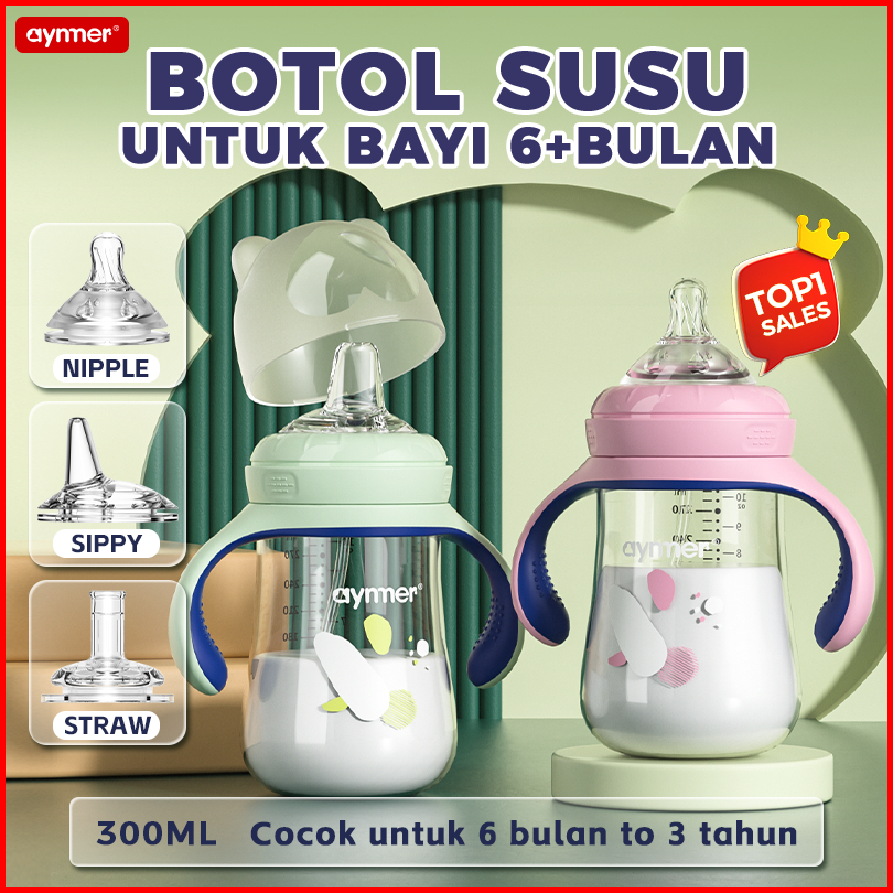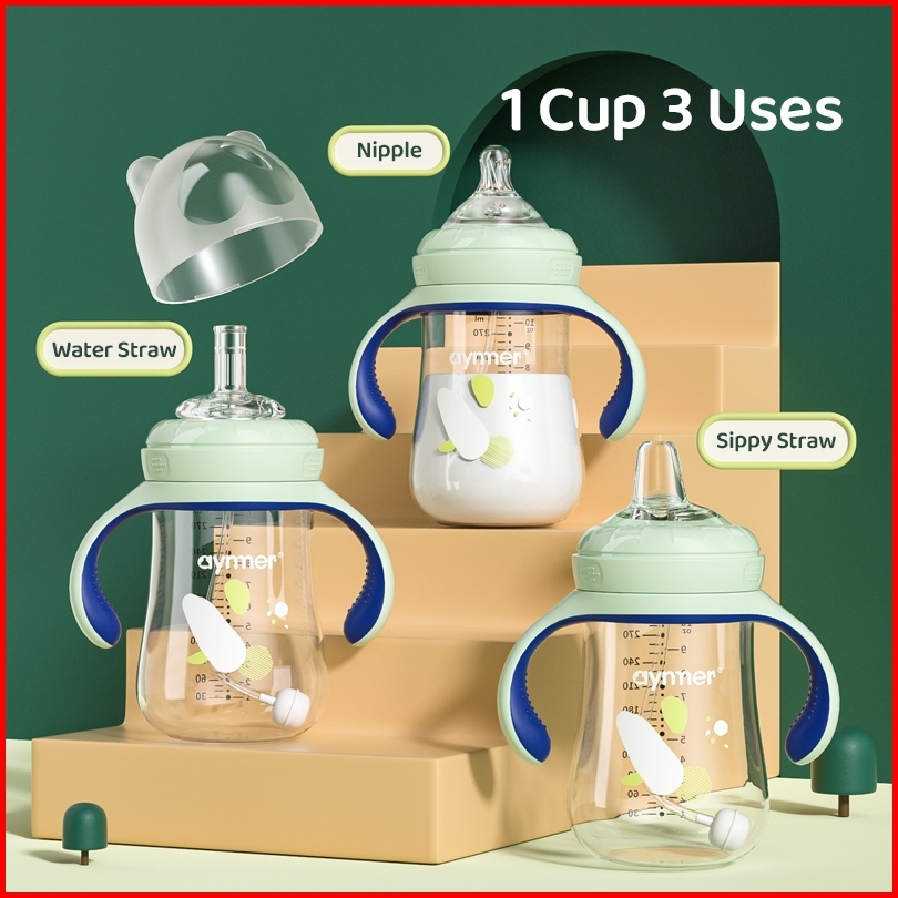 Aynmer Botol Susu Bayi 3 In 1 Wide Neck 300ml Training Cup Botol Susu Anak Botol Minum Bayi Pp Anti Kolik Bpa Free