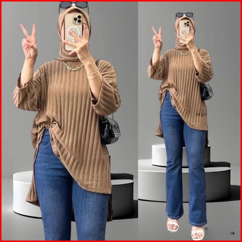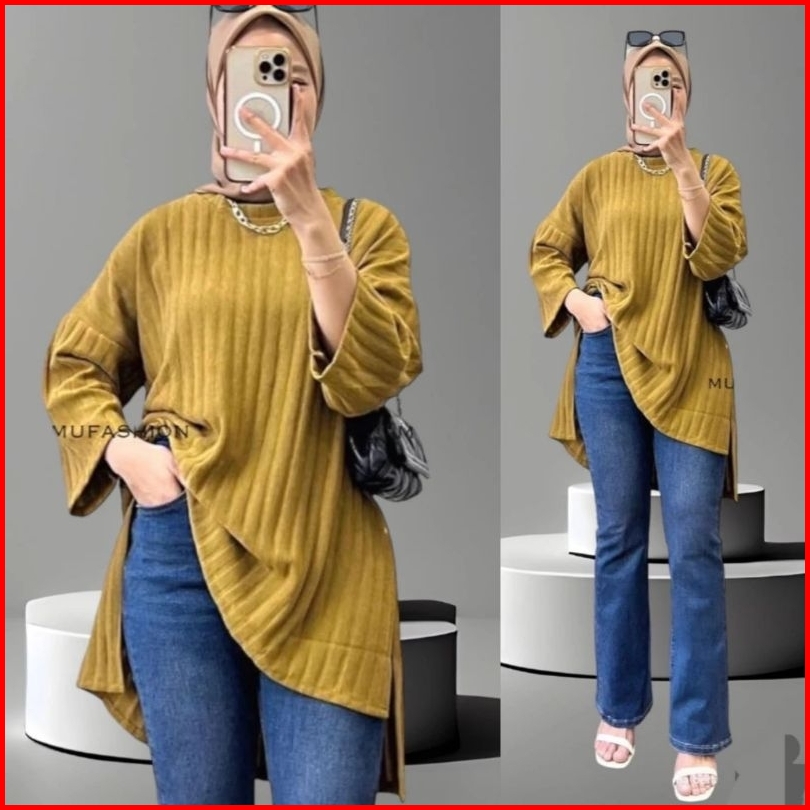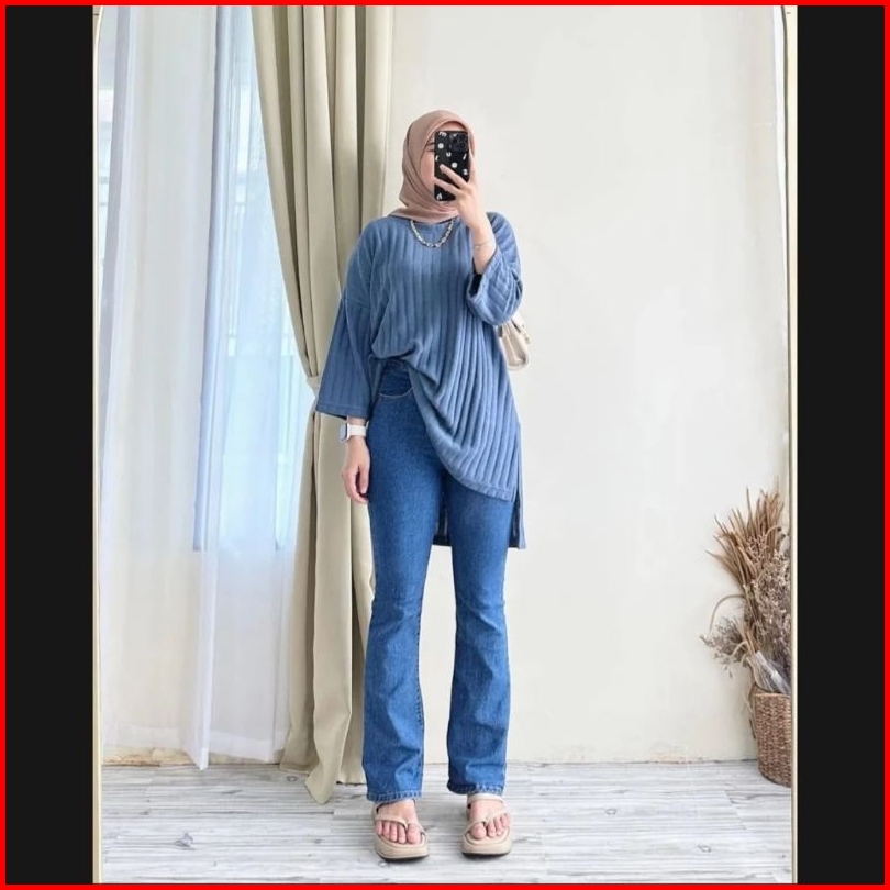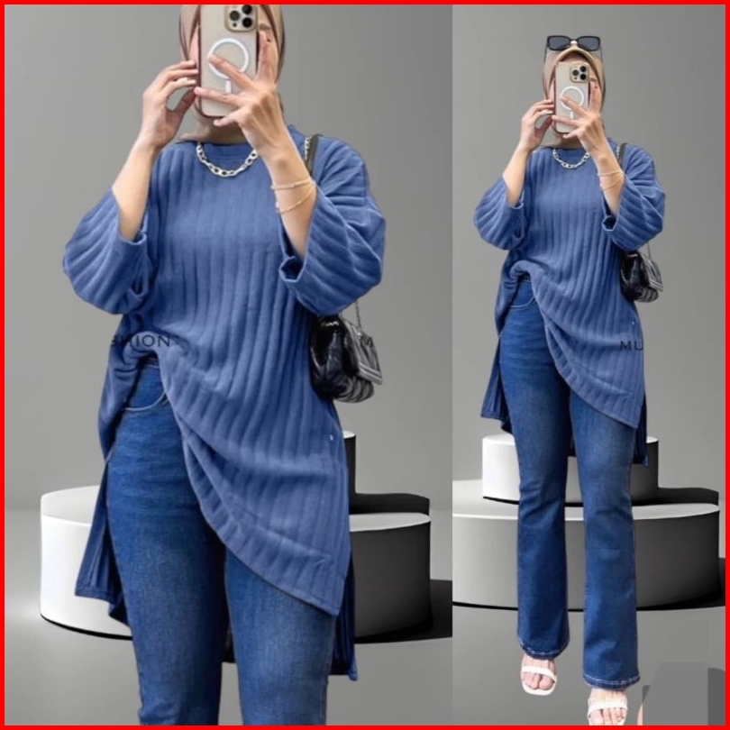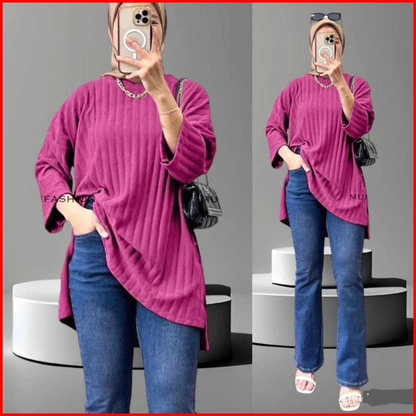Oversize Matt Knit Hornet Tebal Atasan Tunik Lengan 7 8 Premium