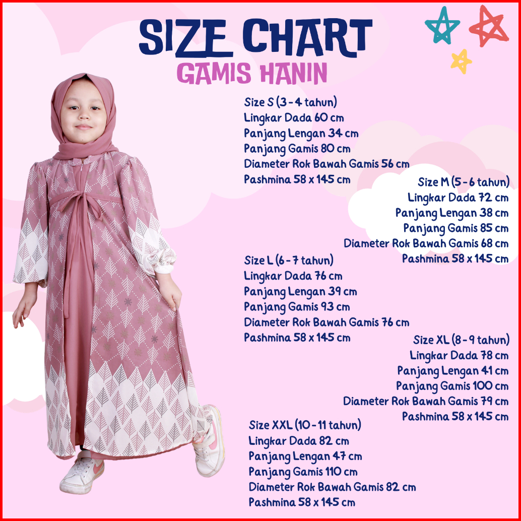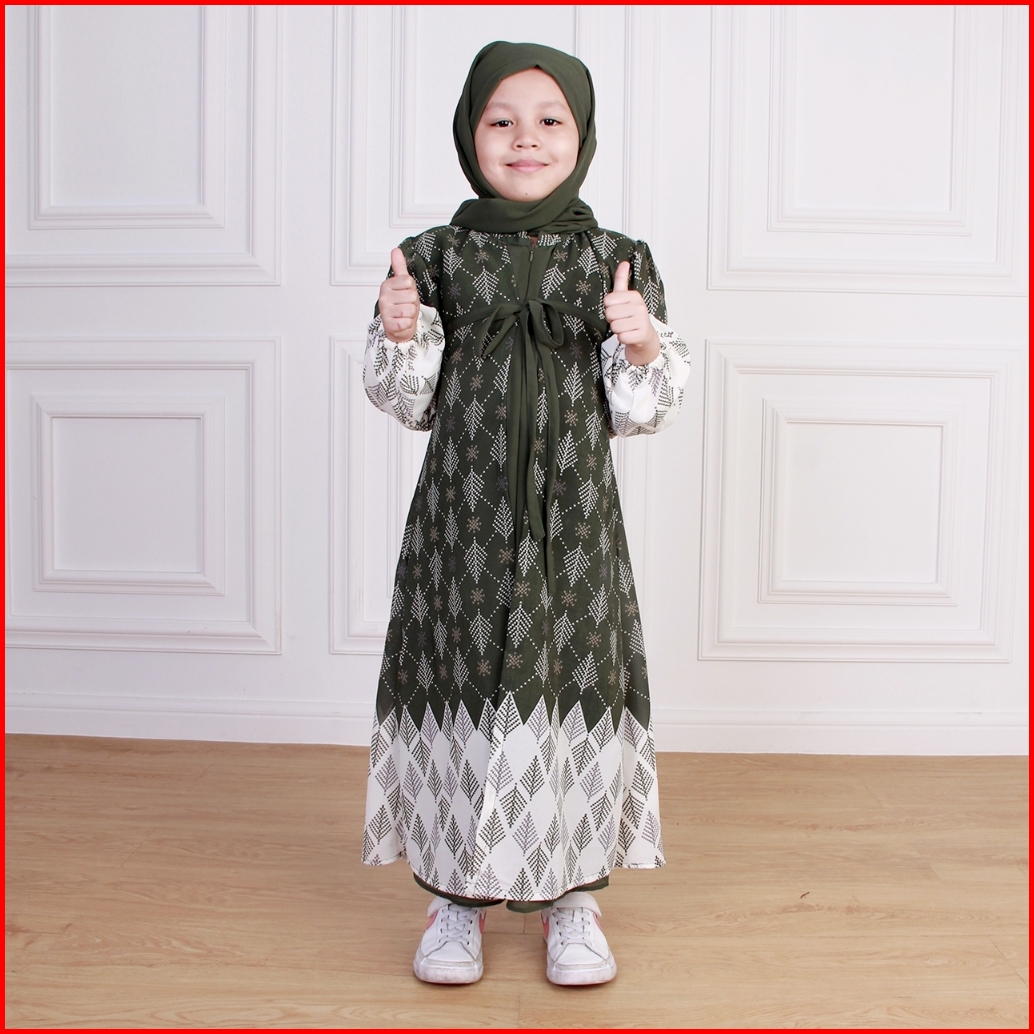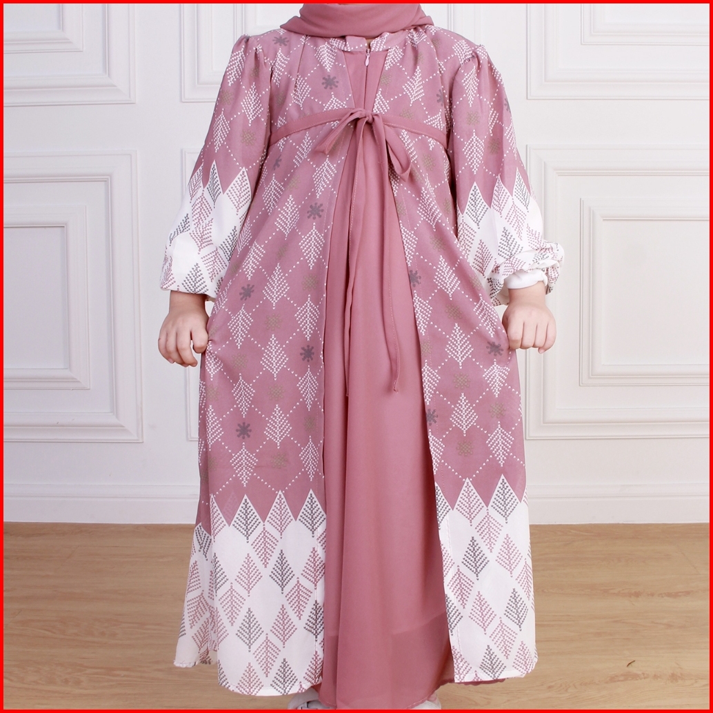Gamis Anak Perempuan Hanin Jubah Ceruty Etnik Free Pashmina 3 - 11 Tahun