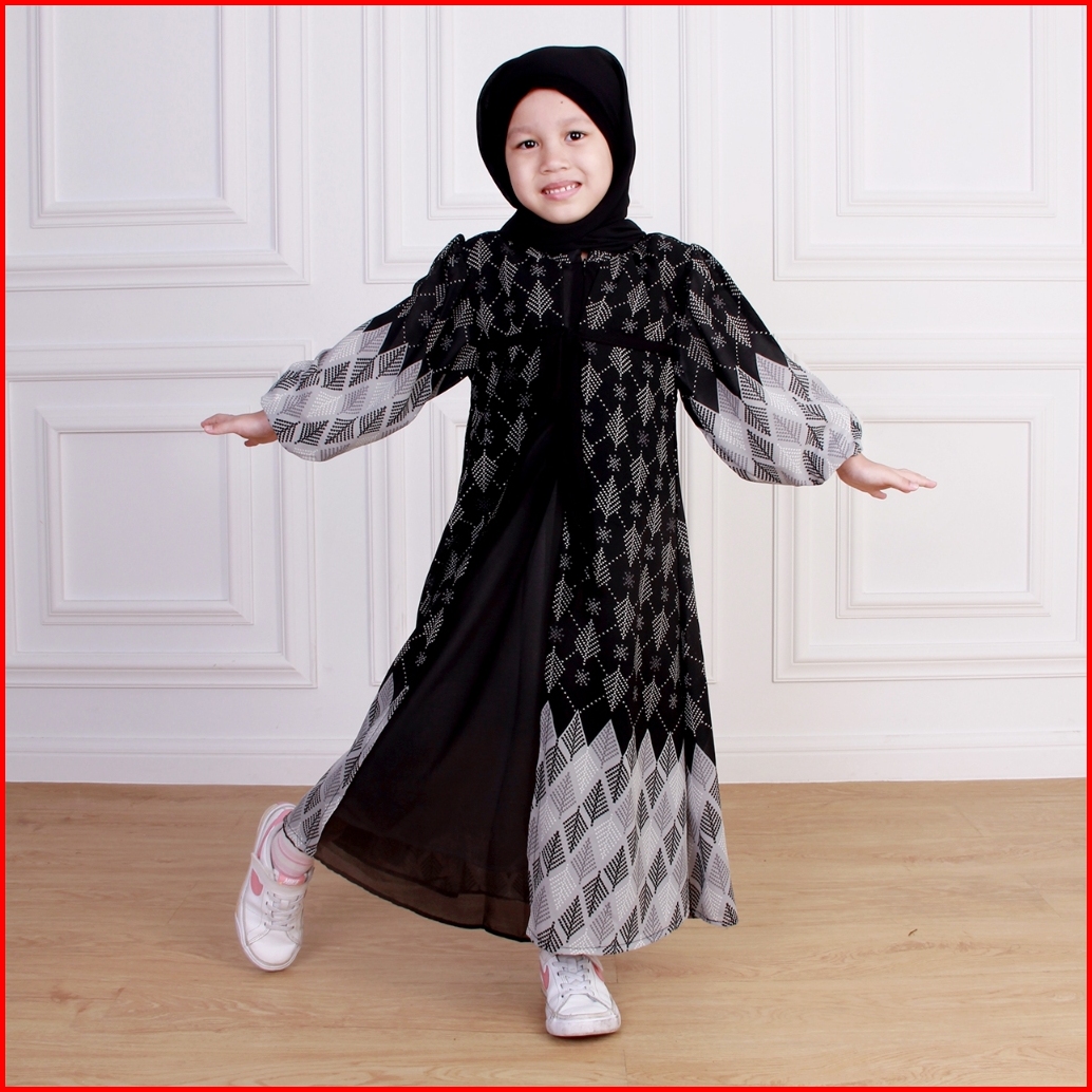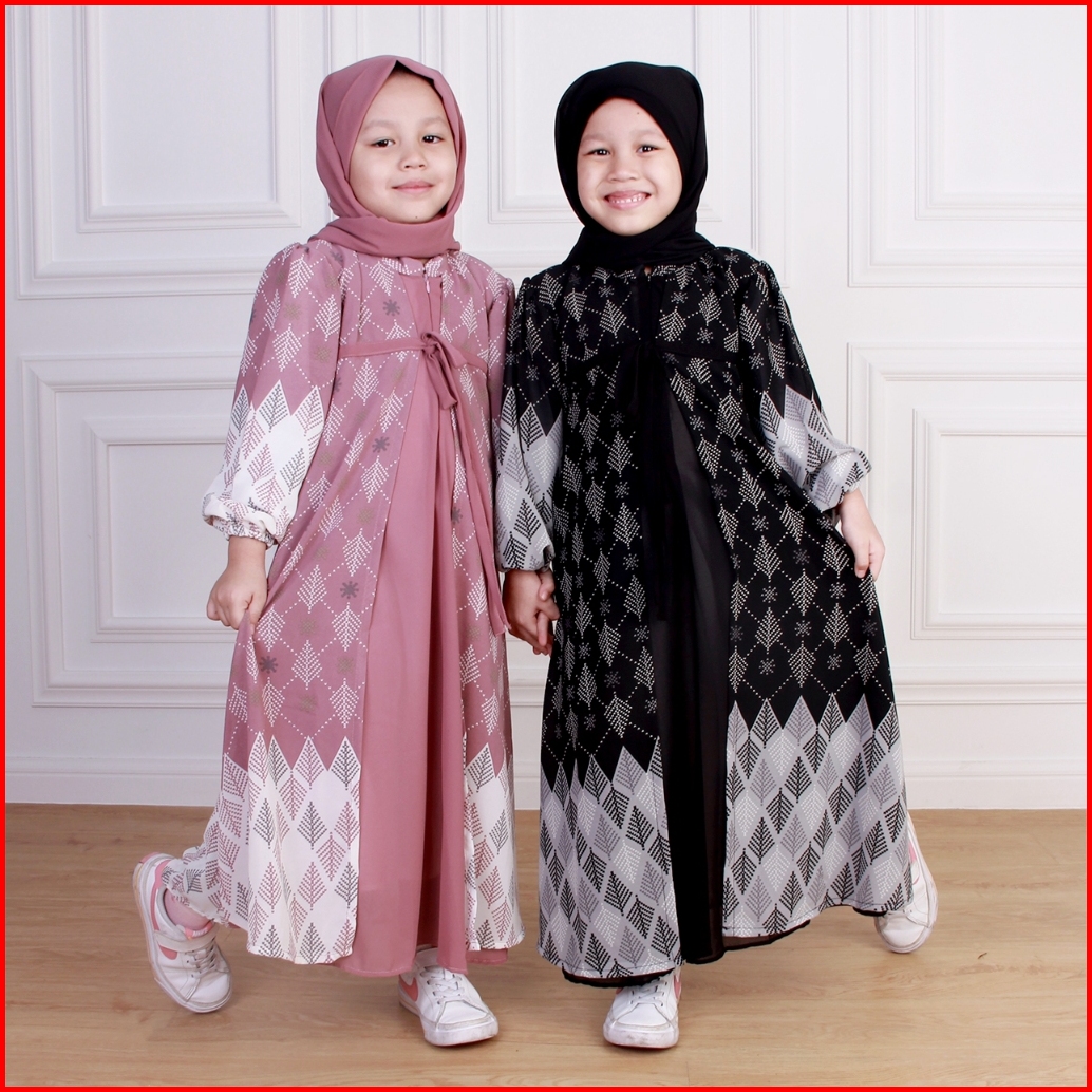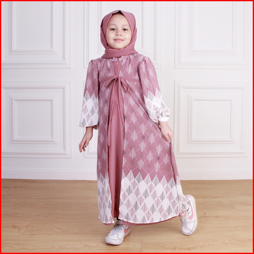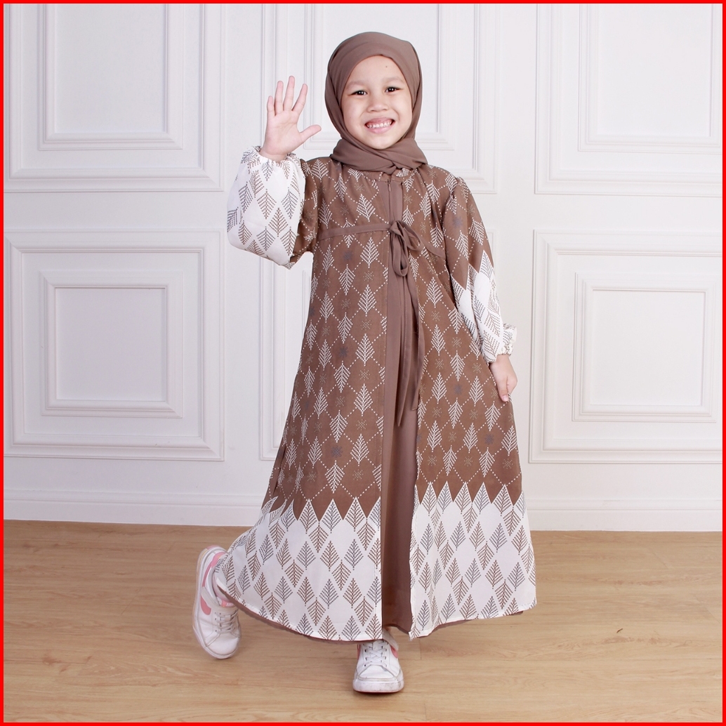 Gamis Anak Perempuan Hanin Jubah Ceruty Etnik Free Pashmina 3 - 11 Tahun