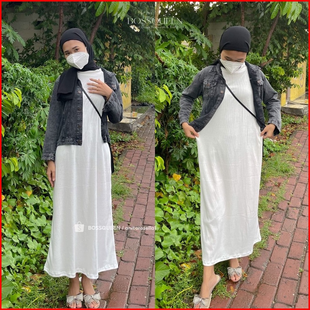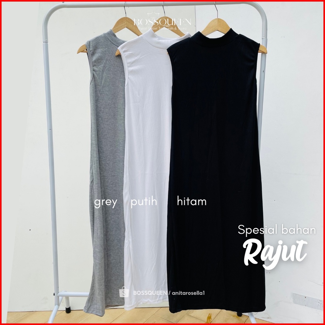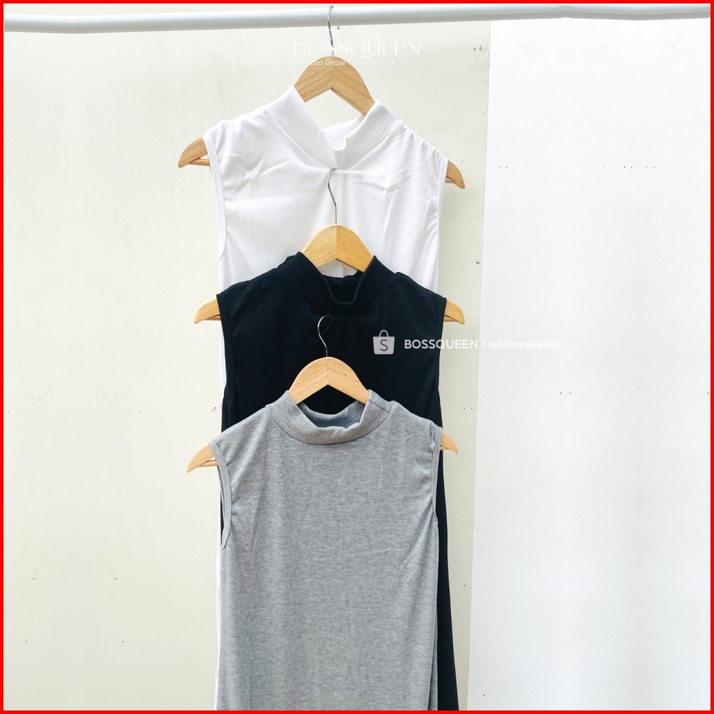 Inner Dress Rajut Span Inner Dress Daleman Wanita Hits Dress Tanpa Lengan Turtleneck Inner Dress Wanita