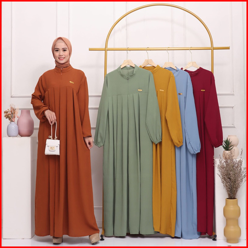 Gamis Crinkle Polos Hinata Maxi Lebaran Free Bros Simple Mewah Baju Muslim Lebaran Eid Gamis Keluarga