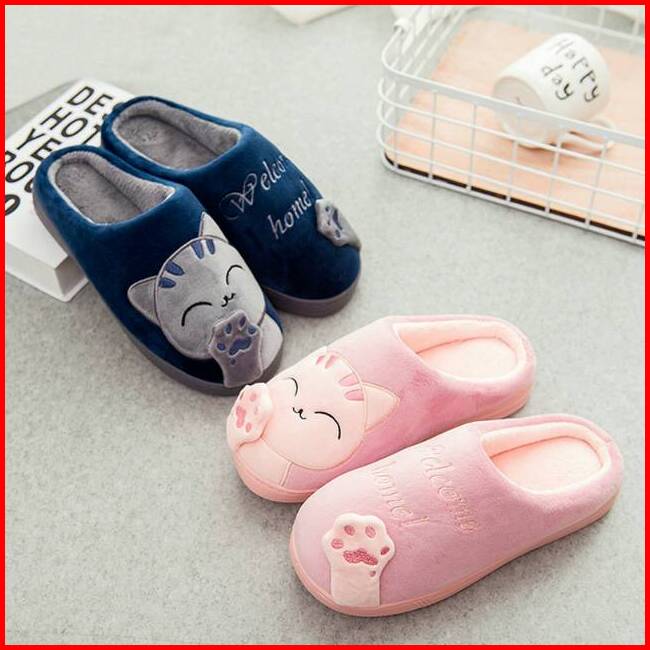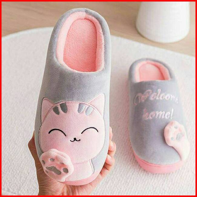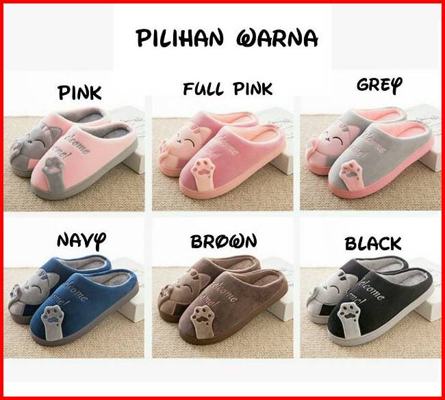 Welcome Home Sandal Sendal Rumah Empuk Hangat Lucu Motif Kucing