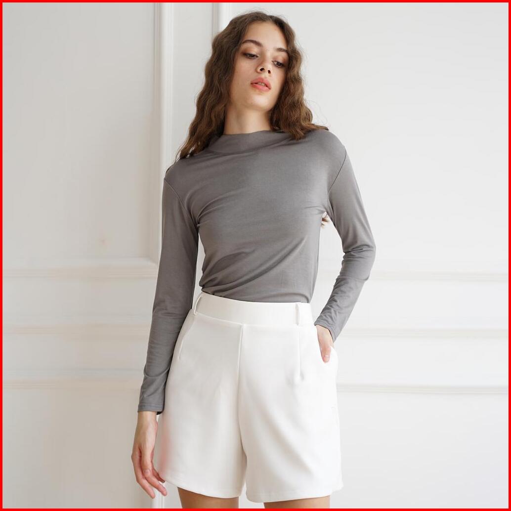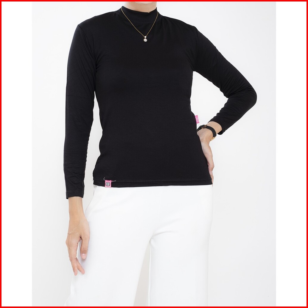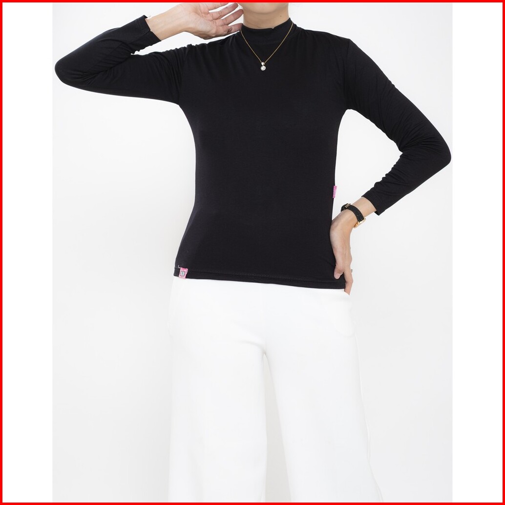 Haymeeidn - Baju Manset Wanita Lengan Panjang Inner Dalaman Cewek Bahan Kaos Hitam Dan Putih