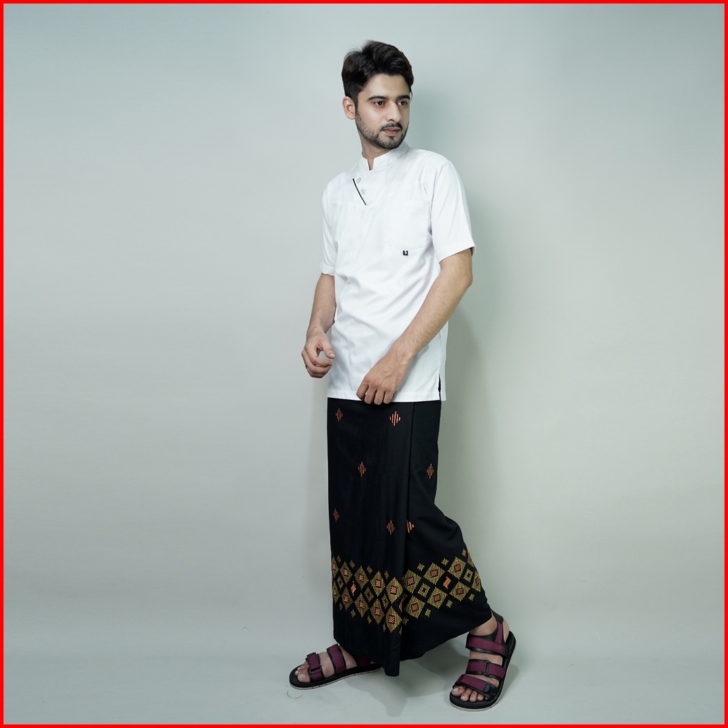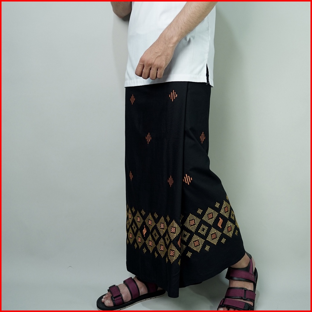 Katsae - Sarung Bordir Motif Sunan Bordir Timbul Sarung Pria Dewasa Warna Hitam Sarung Sholat 100 Bordir