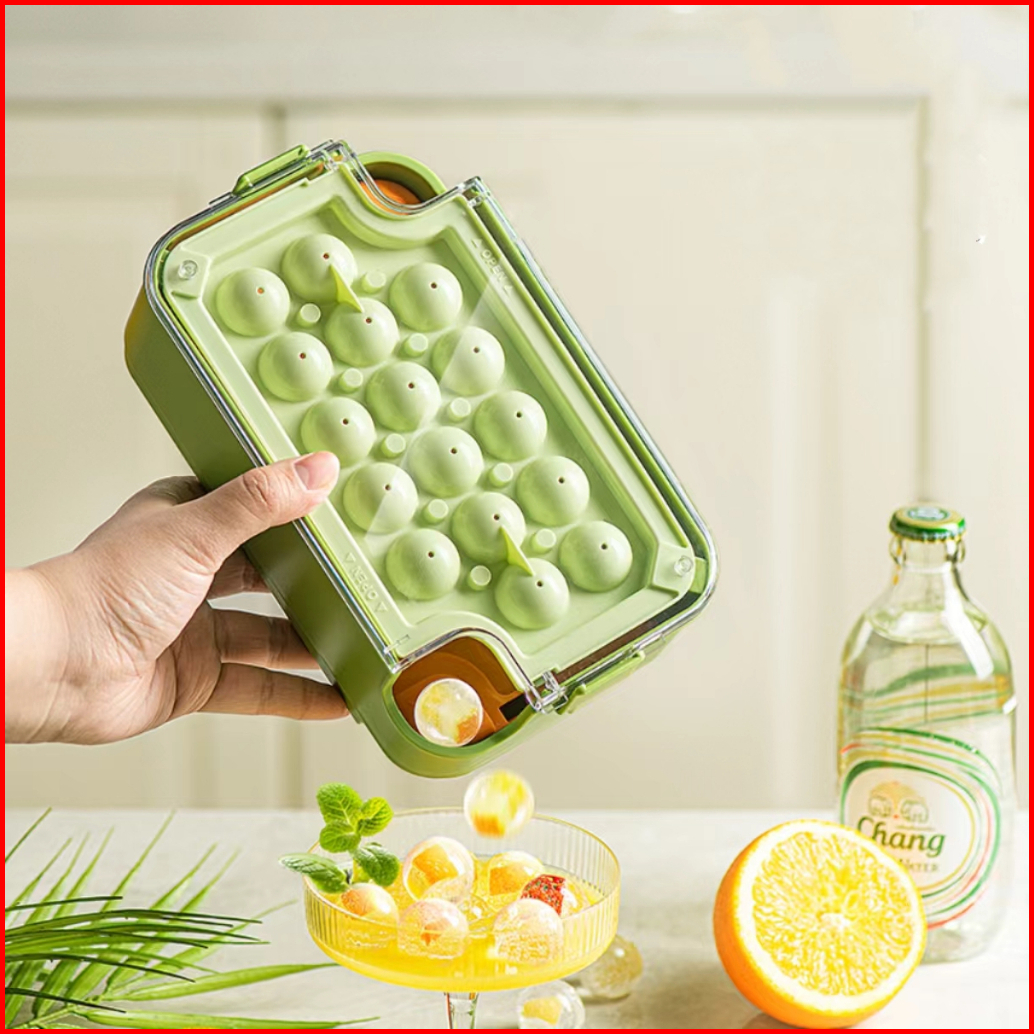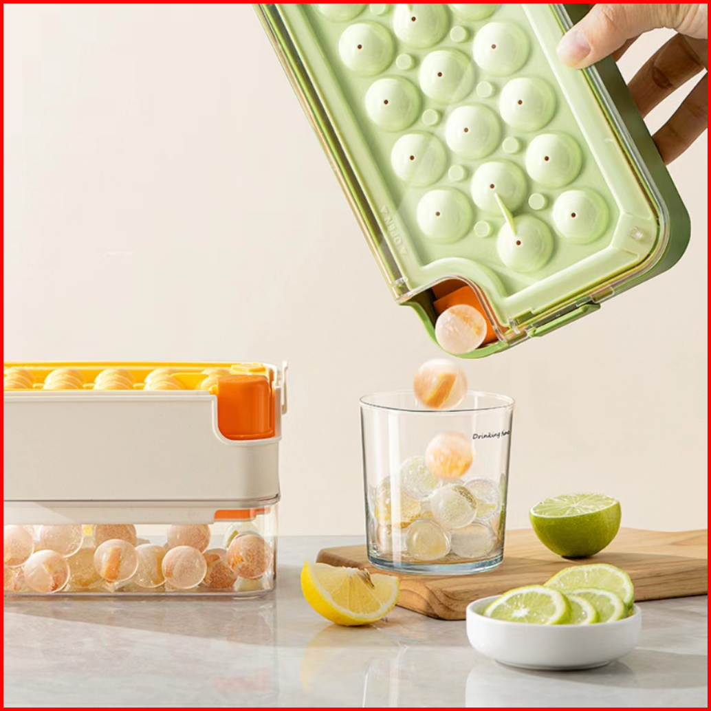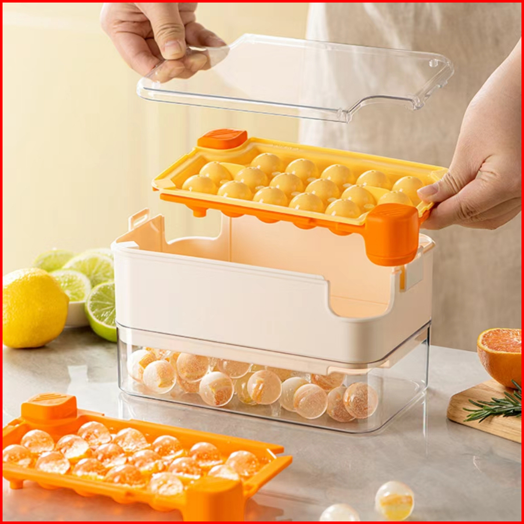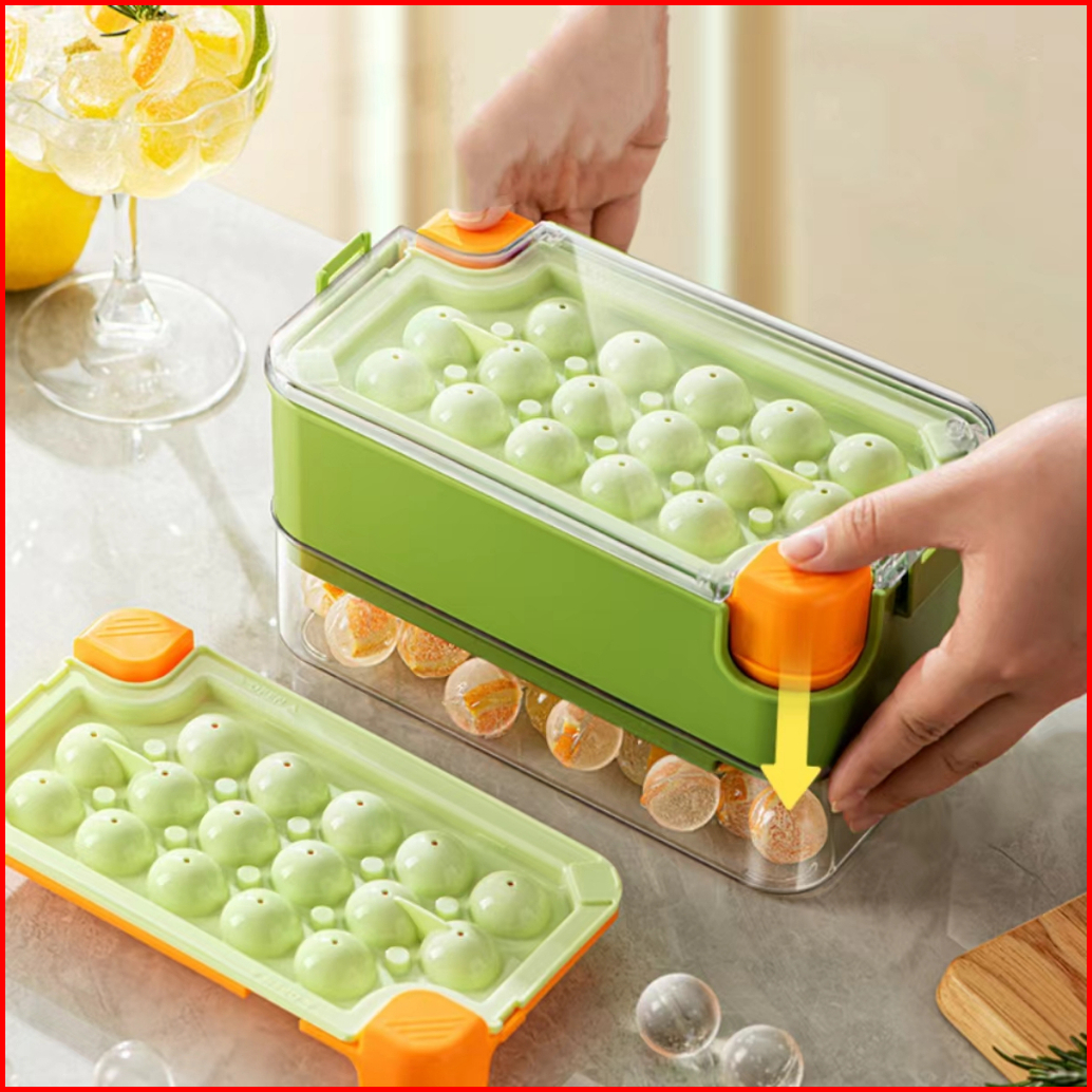 99khome Cetakan Es Batu Bulat Cetakan Es Batu Tekan Pencet Dengan Wadah Sekop Es Batu Lucu Push Ice Tray H981