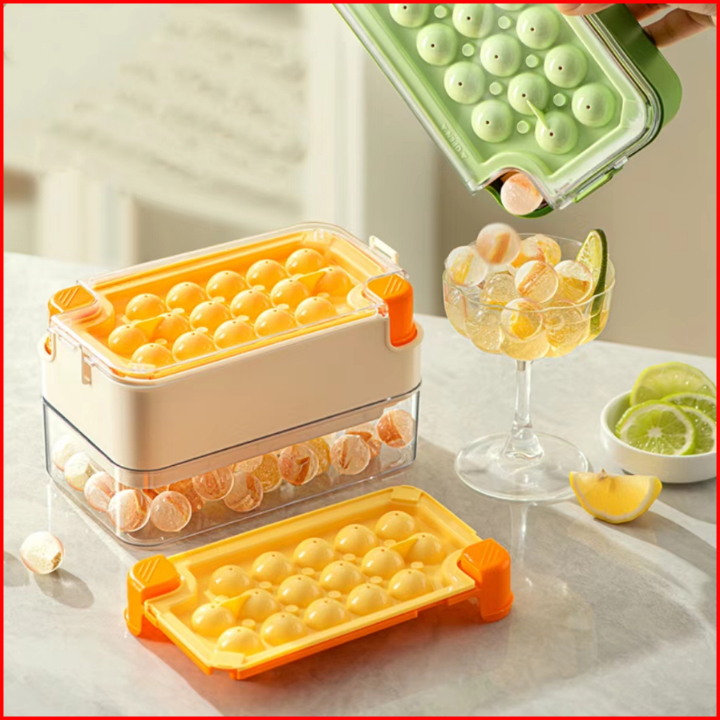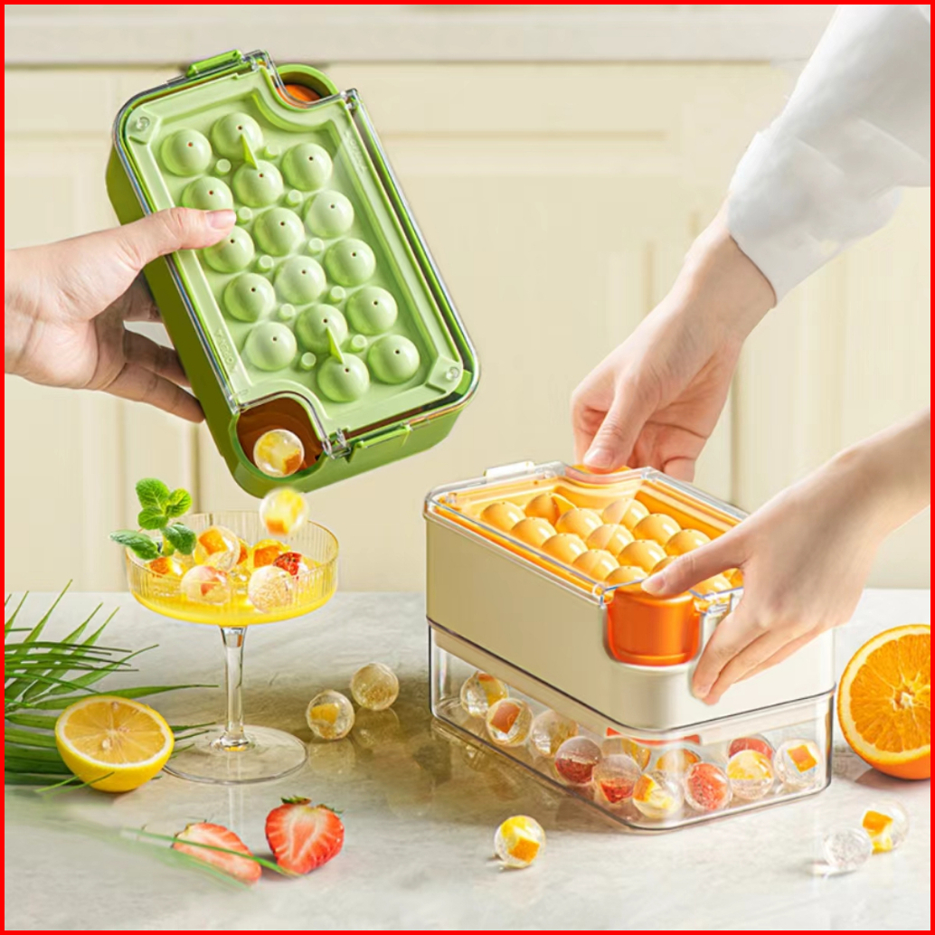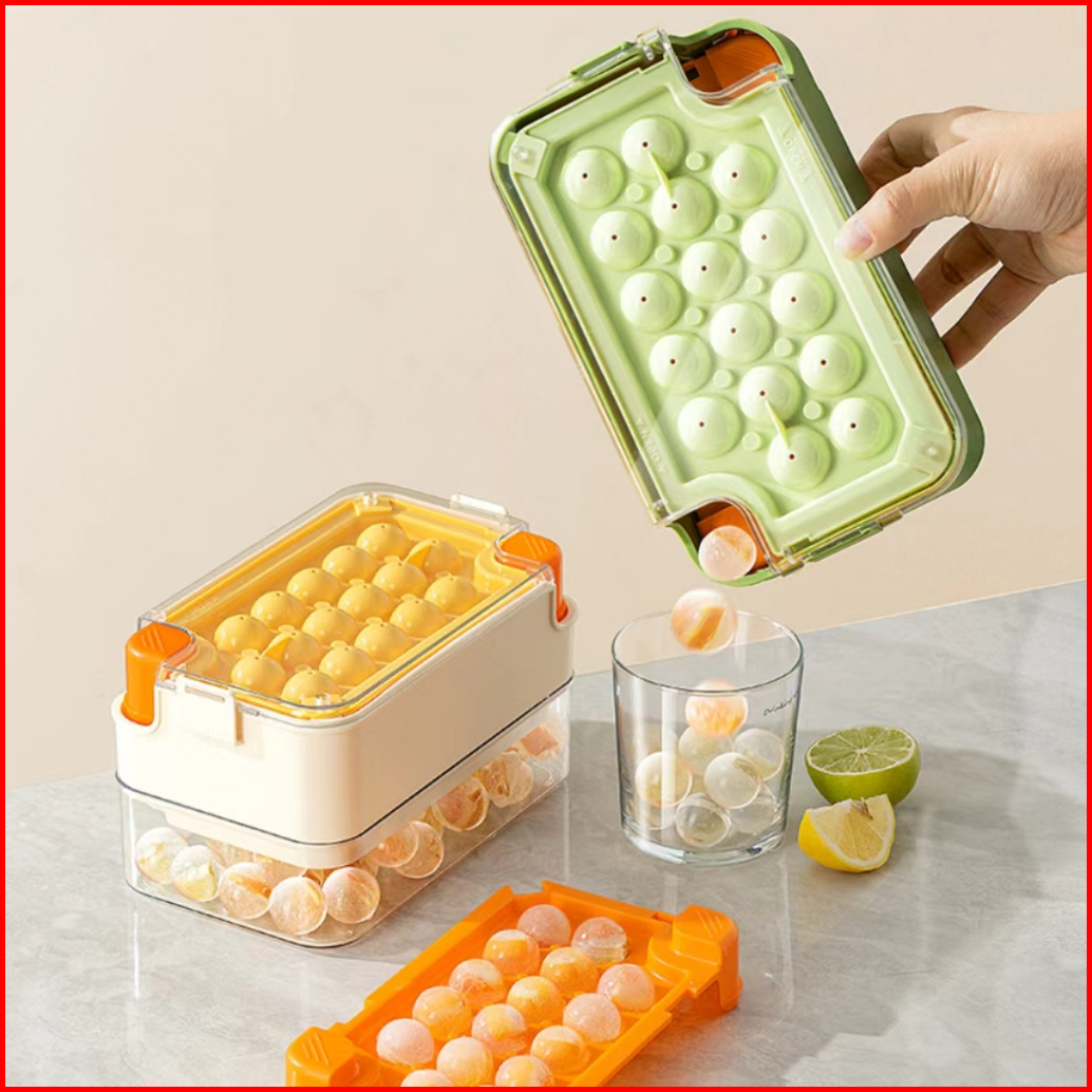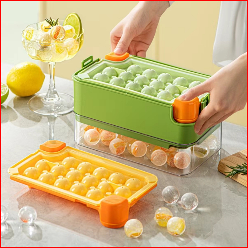 99khome Cetakan Es Batu Bulat Cetakan Es Batu Tekan Pencet Dengan Wadah Sekop Es Batu Lucu Push Ice Tray H981
