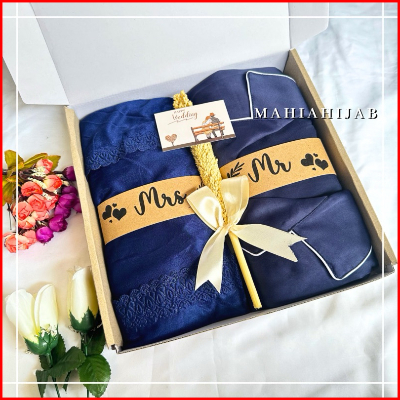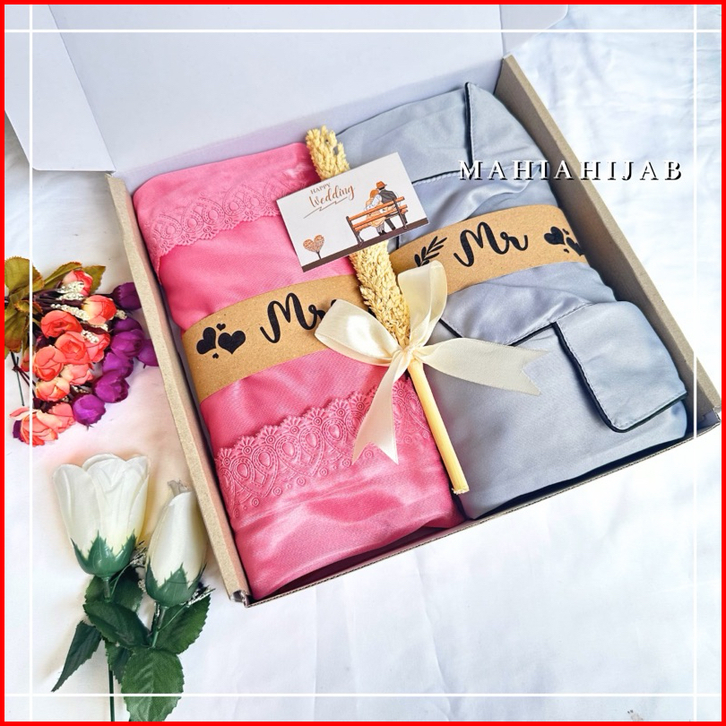 Hampers Wedding Baju Tidur Satin Couple Hadiah Pernikahan Setelan Piyama Pria Dan Lingerie Kimono Wanita Hampers Wedding