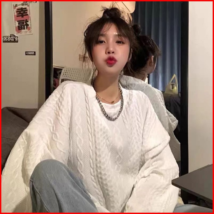 Po Floret Sweter Putih Longgar Atasan Lengan Panjang Wanita Fashion Ukuran Plus