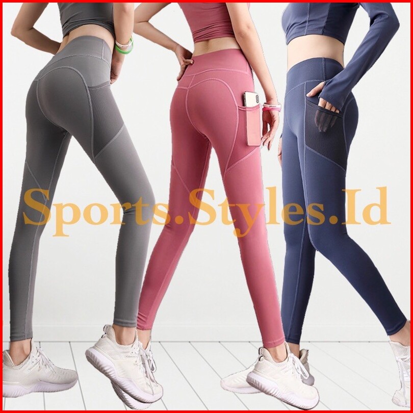 Sports.styles.id Celana Lengging Wanita Panjang Poket Olahraga Sport Gym Fitness Yoga Running Zumba