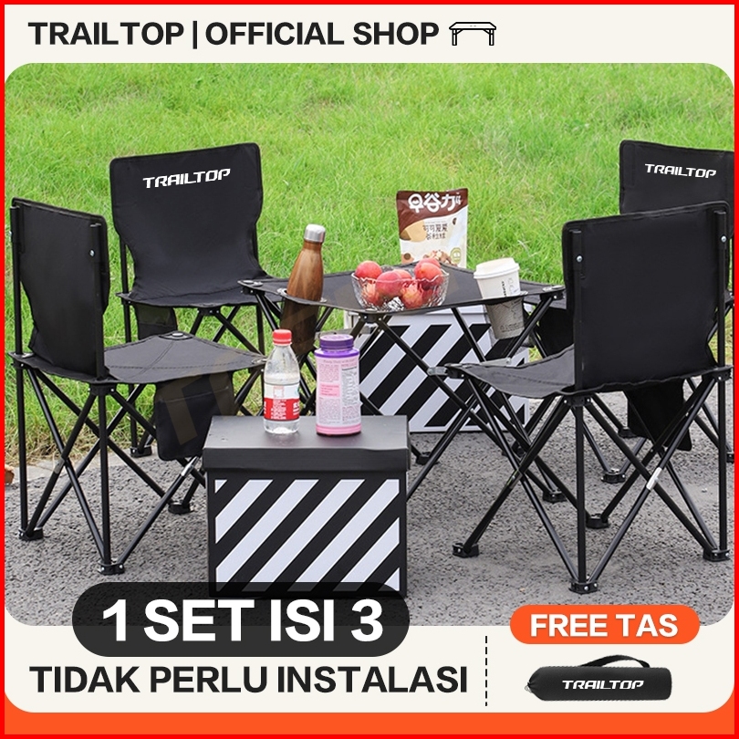 Trailtop Kursi Lipat Dan Meja Lipat Outdoor 1 Set Isi 3 Pcs Tidak Perluinstalasi