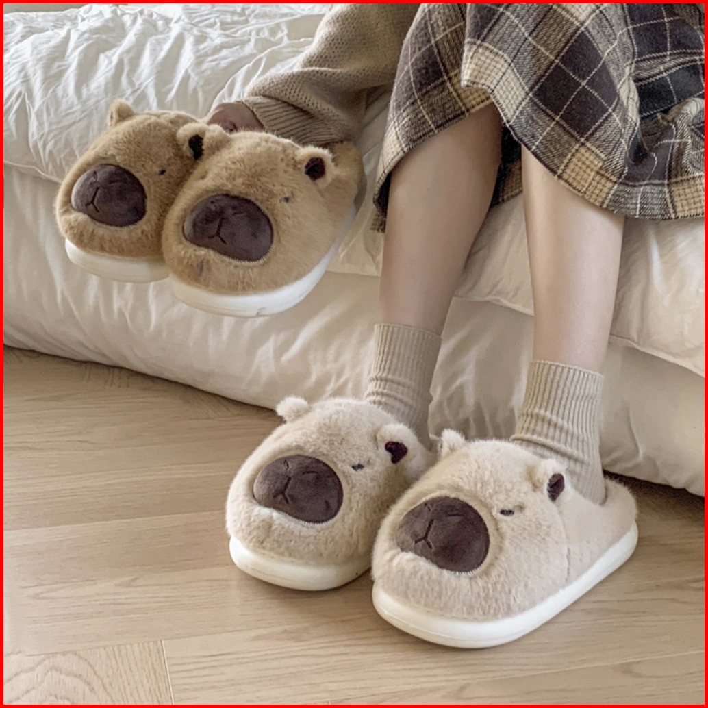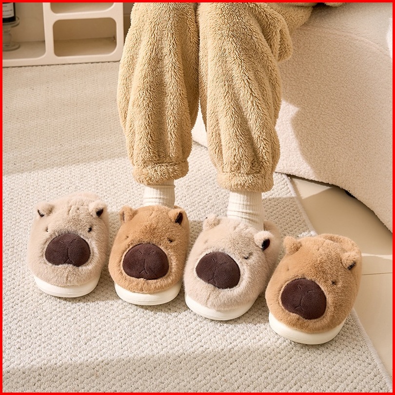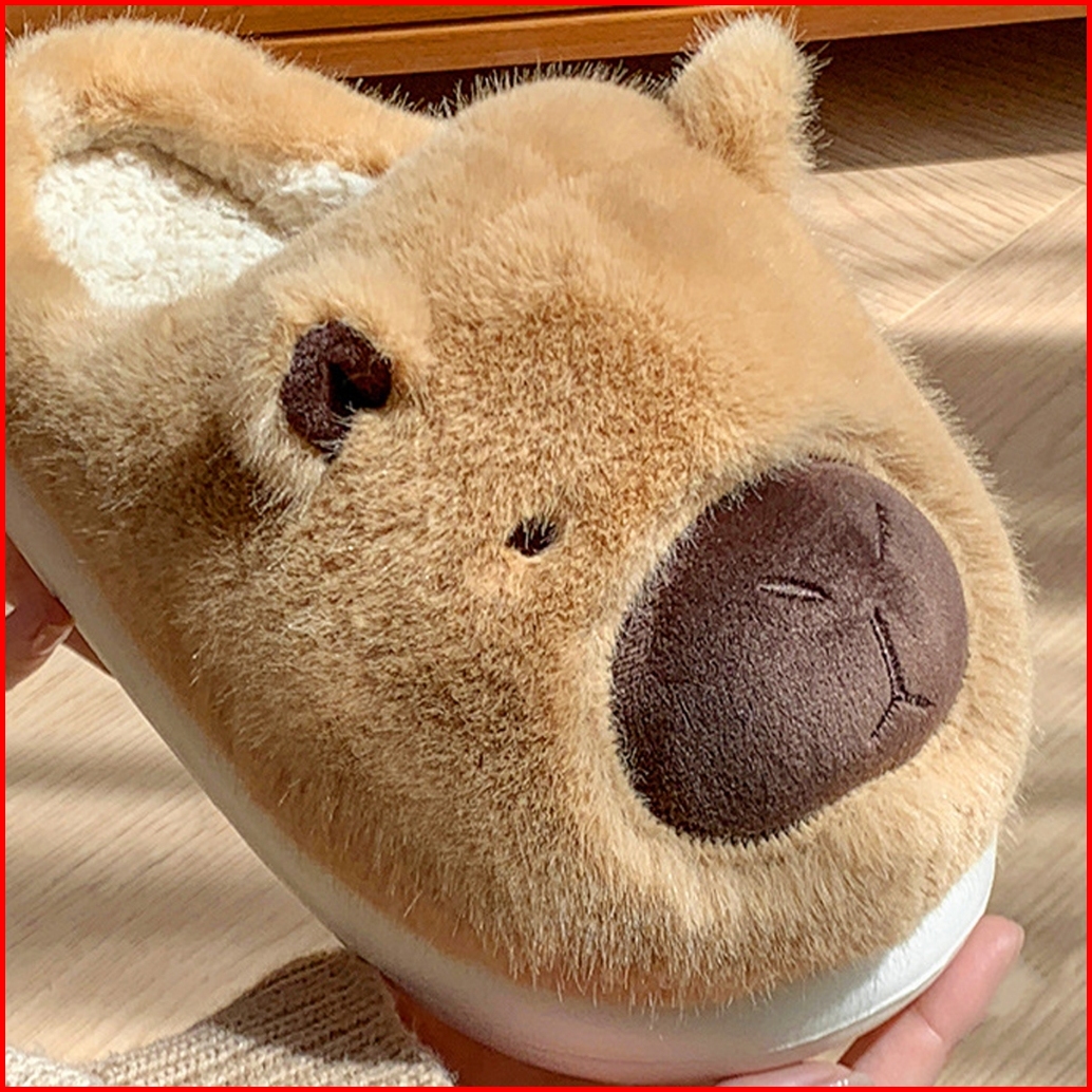 Sandal Sendal Rumah Santai Hangat Empuk Couple Bulu Boneka Model Selop Capybara Capibara Anti Slip