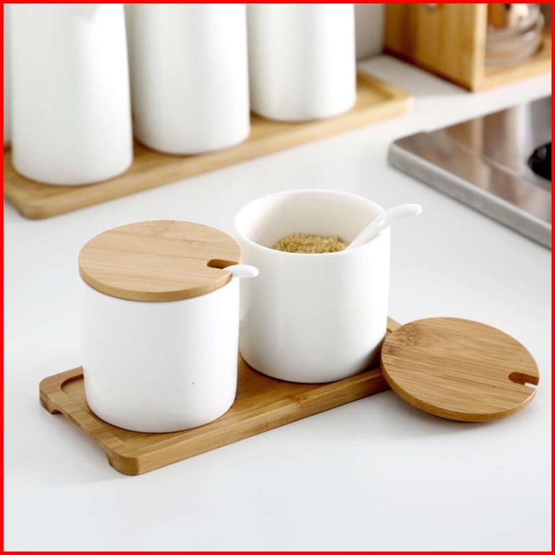 Ms Tempat Bumbu Dapur Keramik Spicey Jar Set Tempat Bumbu 3in1