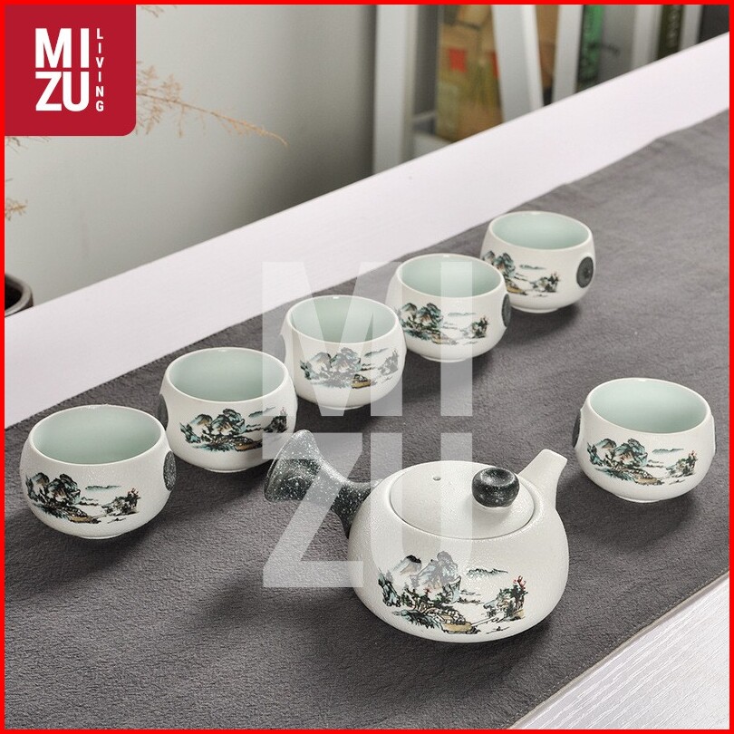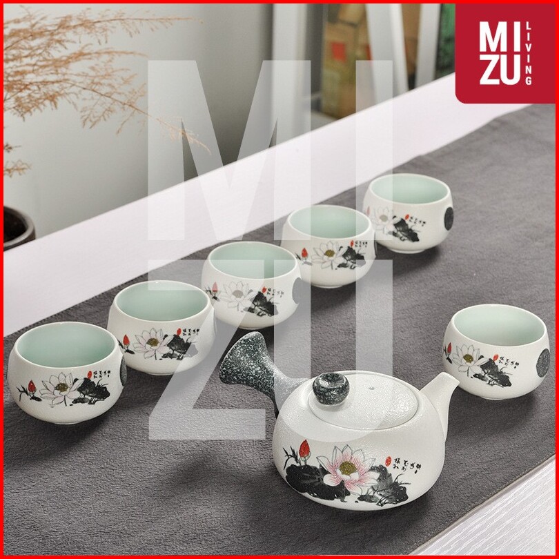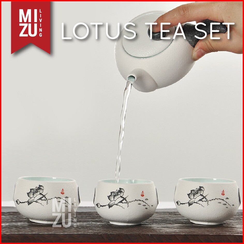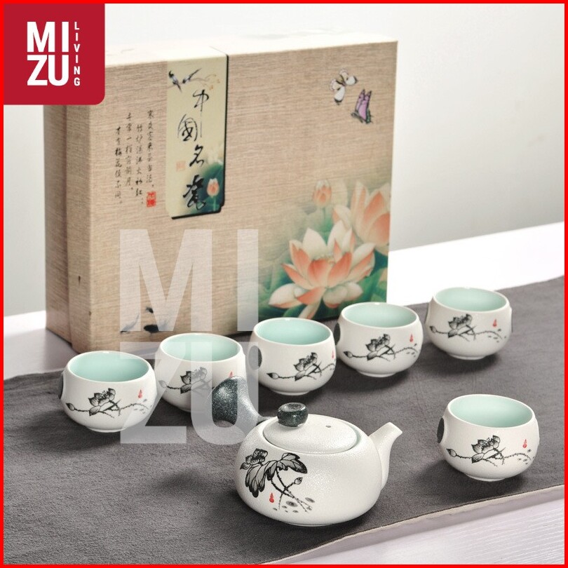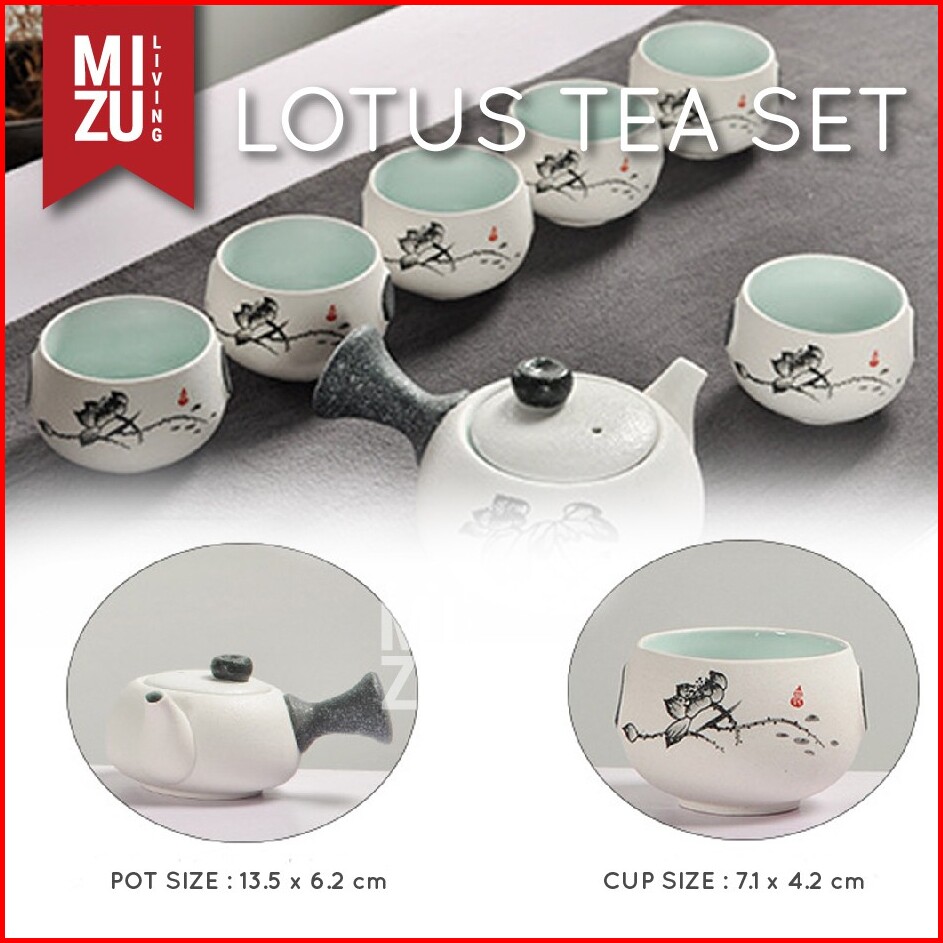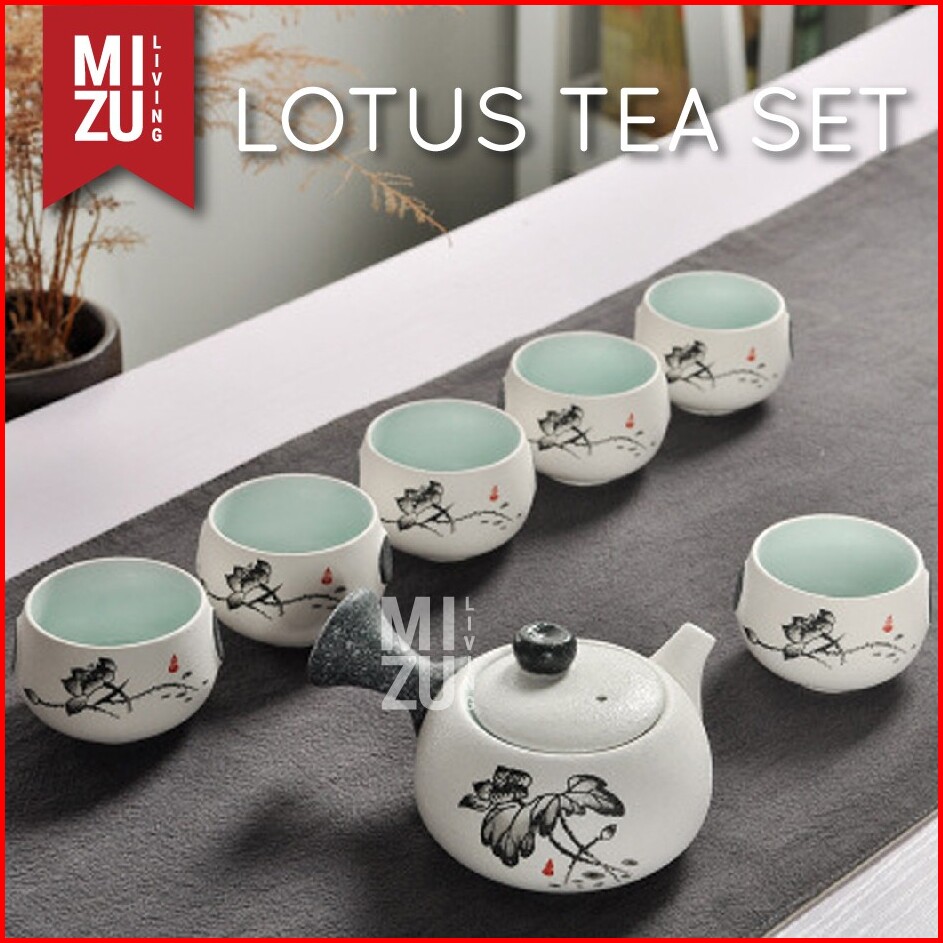 Lotus Classic Chinese Tea Pot Set 6 Cups Textured Ceramic With Gift Box Teko 6 Cangkir Teh Keramik