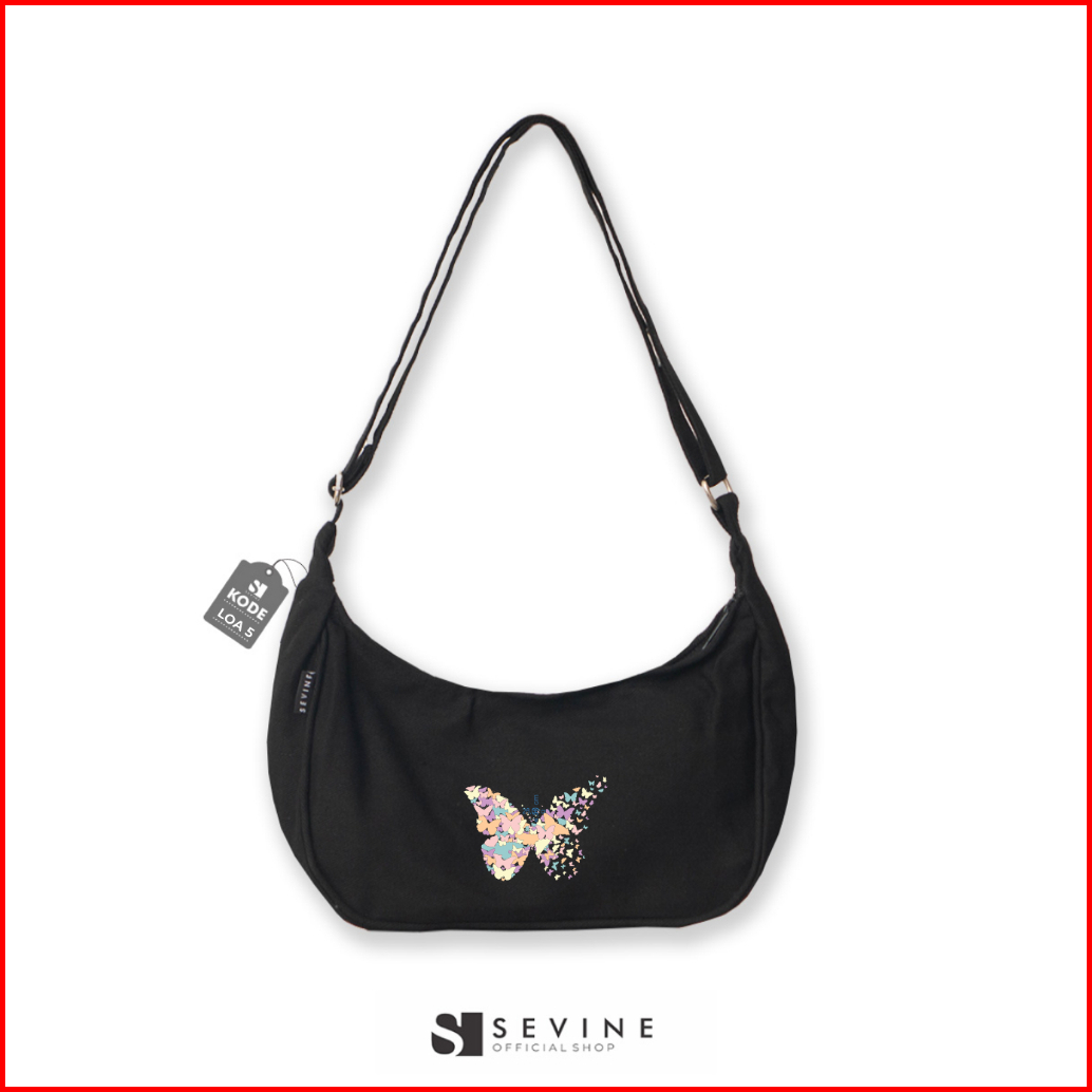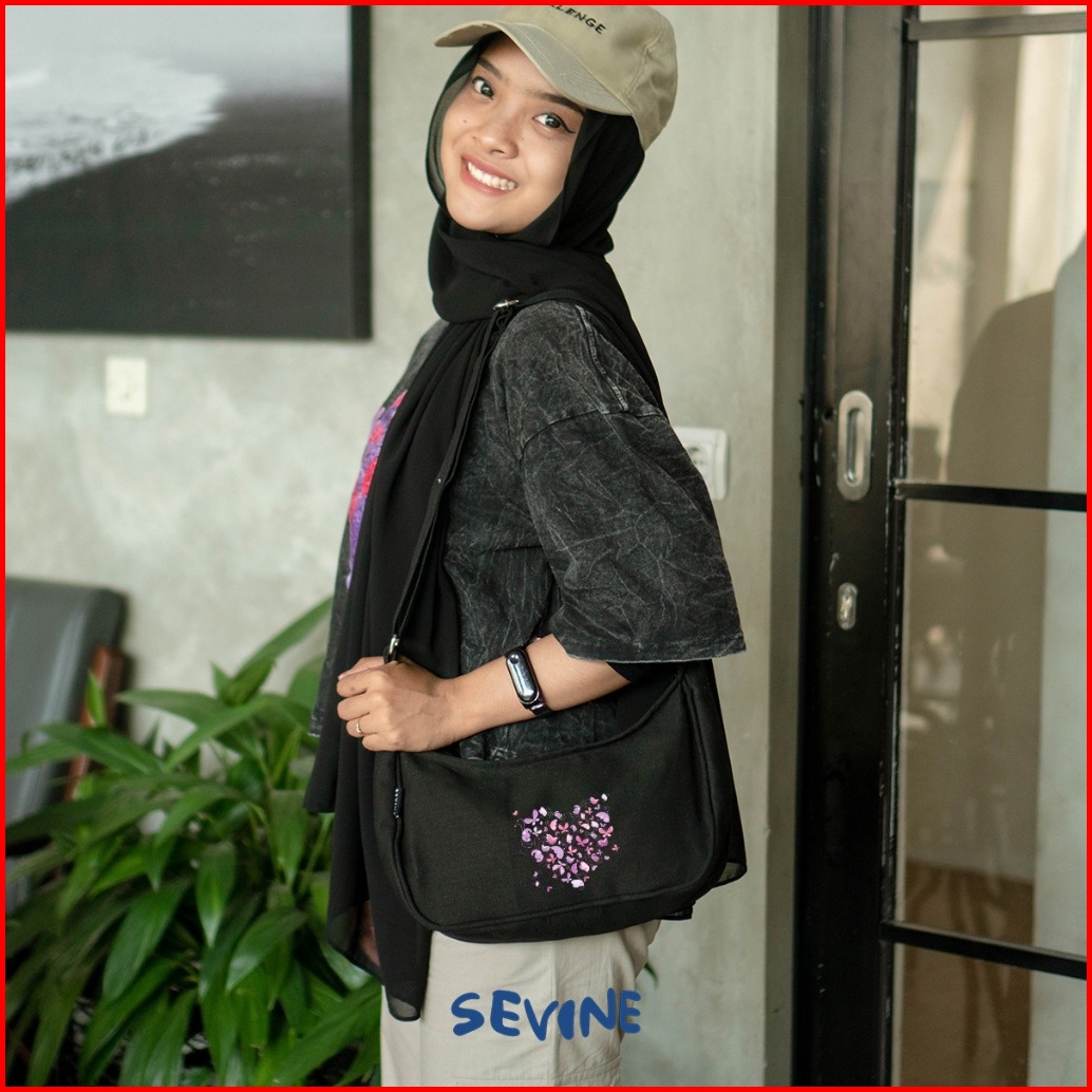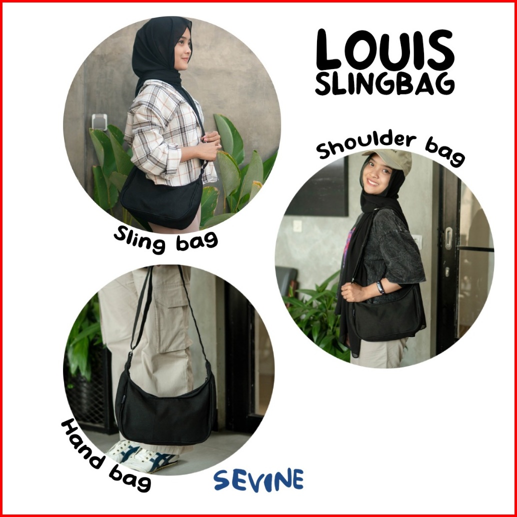 Sevine Louis Sling Bag Shoulder Hand Tas Selempang Wanita Cewek Korea Resleting Kanvas - Loa