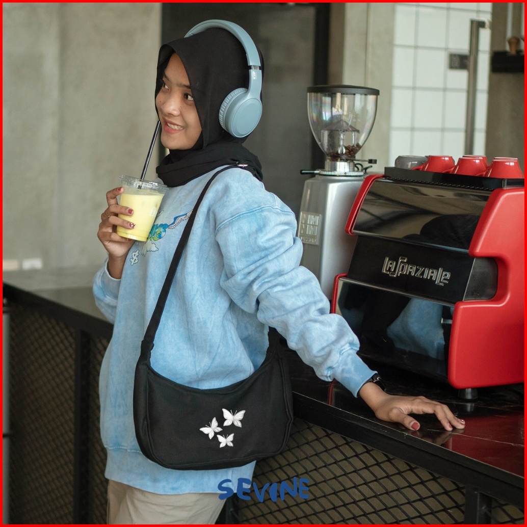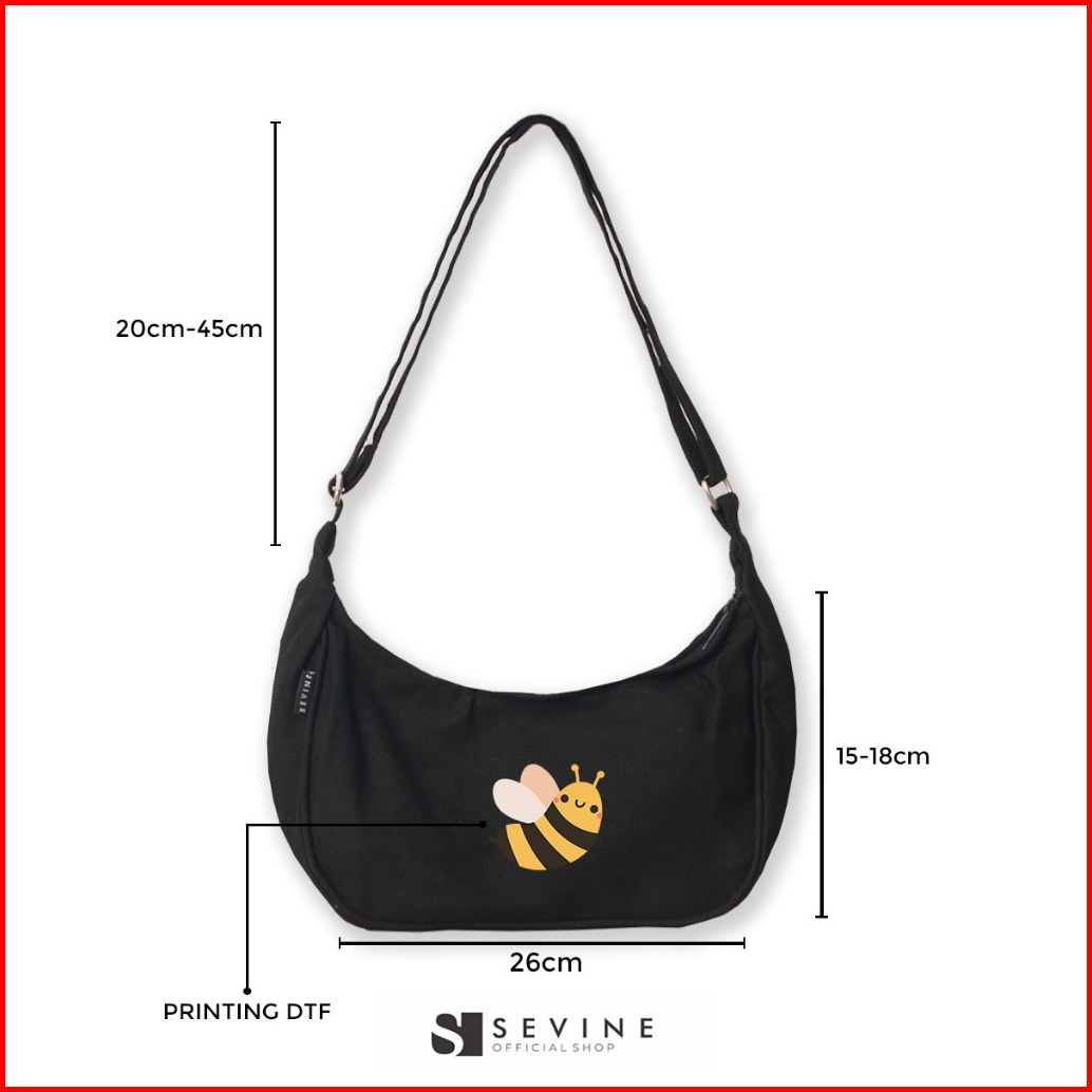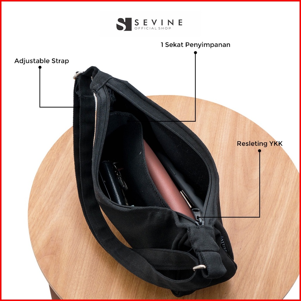 Sevine Louis Sling Bag Shoulder Hand Tas Selempang Wanita Cewek Korea Resleting Kanvas - Loa