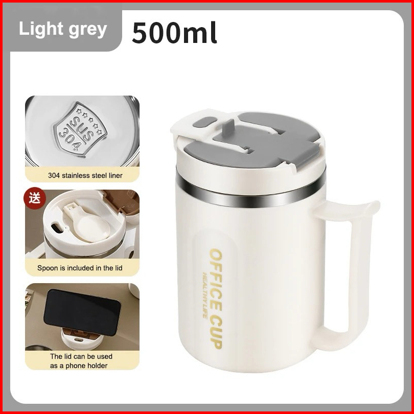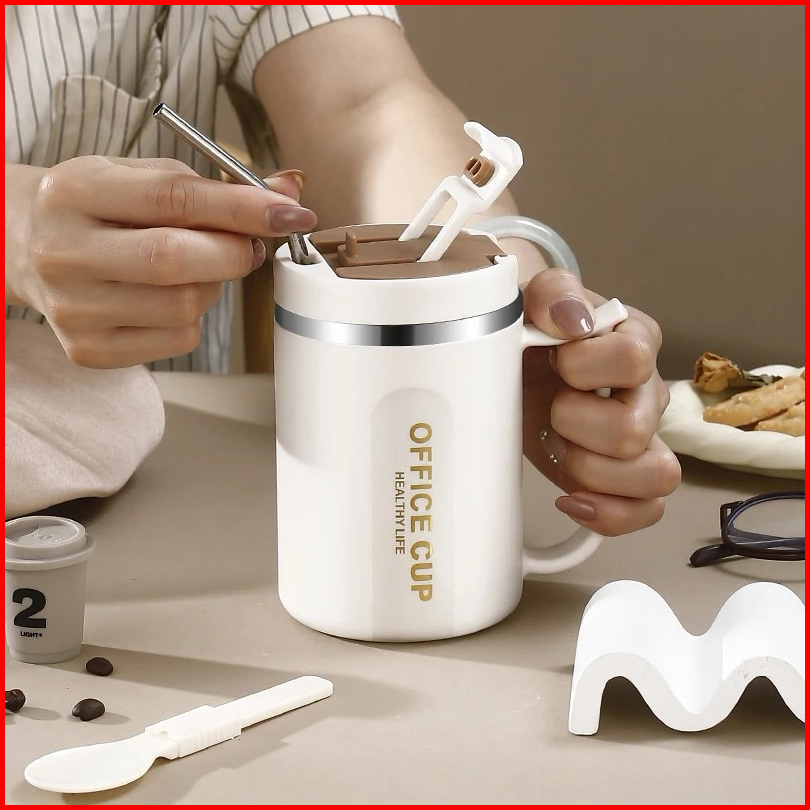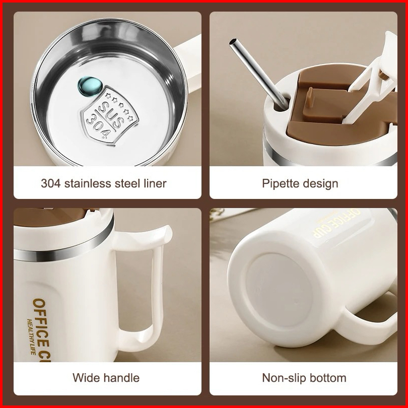 Mug Stainless Mug Coffee Tahan Panas Mug Dengan Handle Dan Sedotan Kapasitas 500ml 913