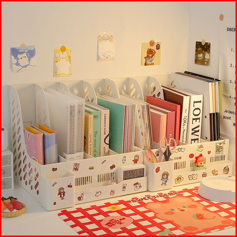 Penjual Lokal Rak Buku Minimalis Aesthetic Tempat Pena Rak Penyimpanan Desktop Organizer Box File