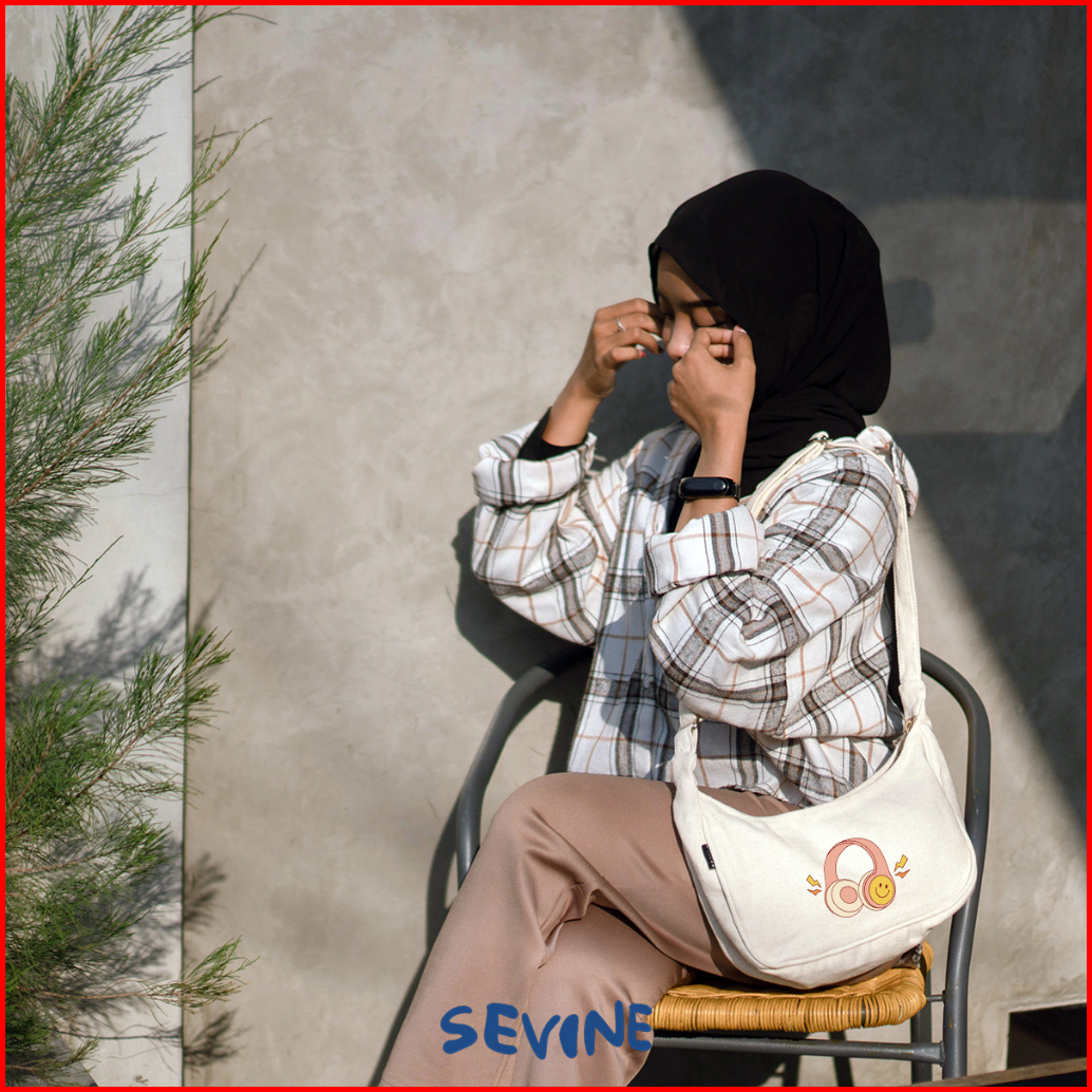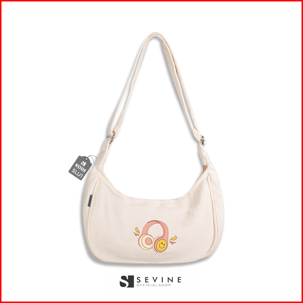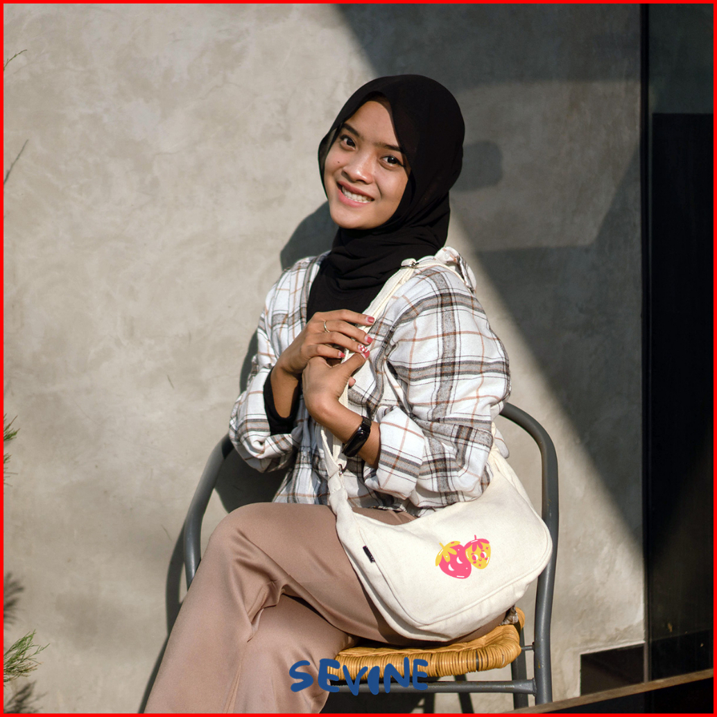 Sevine Luna Sling Bag Kanvas Wanita Tas Selempang Cewek Shoulder Bag Hand Slingbag Resleting - Slu
