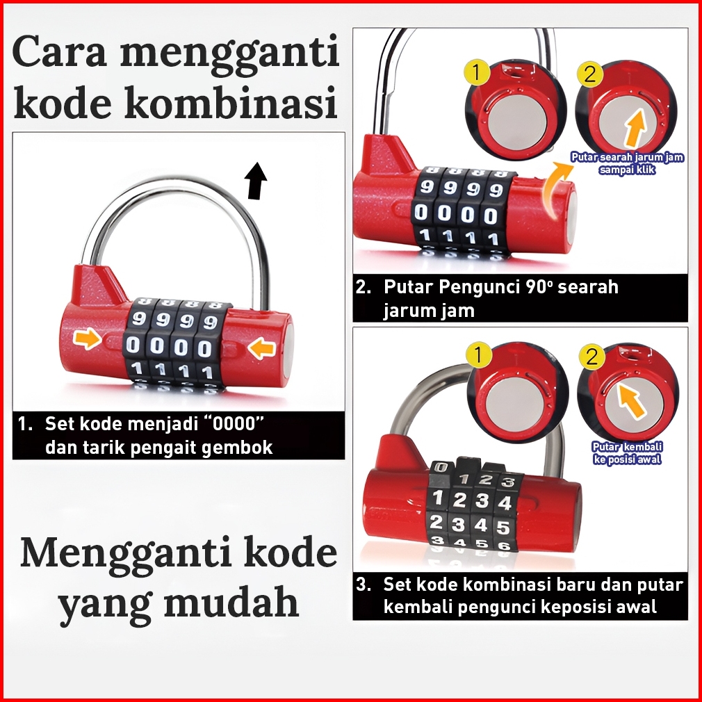 Hoas Shop Gembok Angka 4 Digit Gembok Password Shackle Lock Pagar Pintu Motor Multifungsi Gembok Kombinasi Gs-10