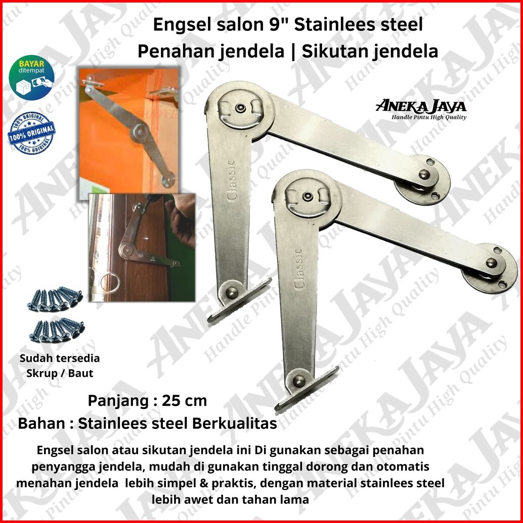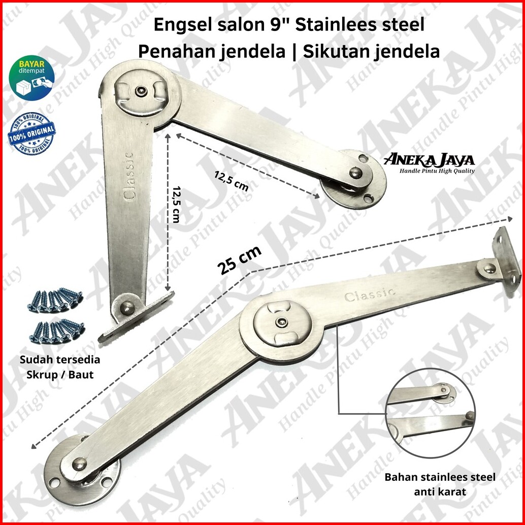 Engsel Salon 9 Stainlees Steel Sikutan Jendela Lipat Penahan Jendela