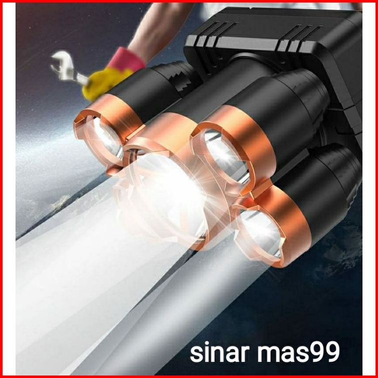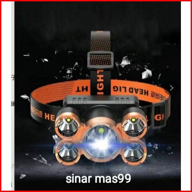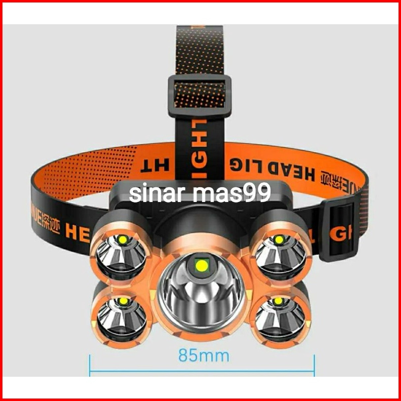Senter Kepala 50 Watt Super Terang Cree 5 X 1led Headlamp