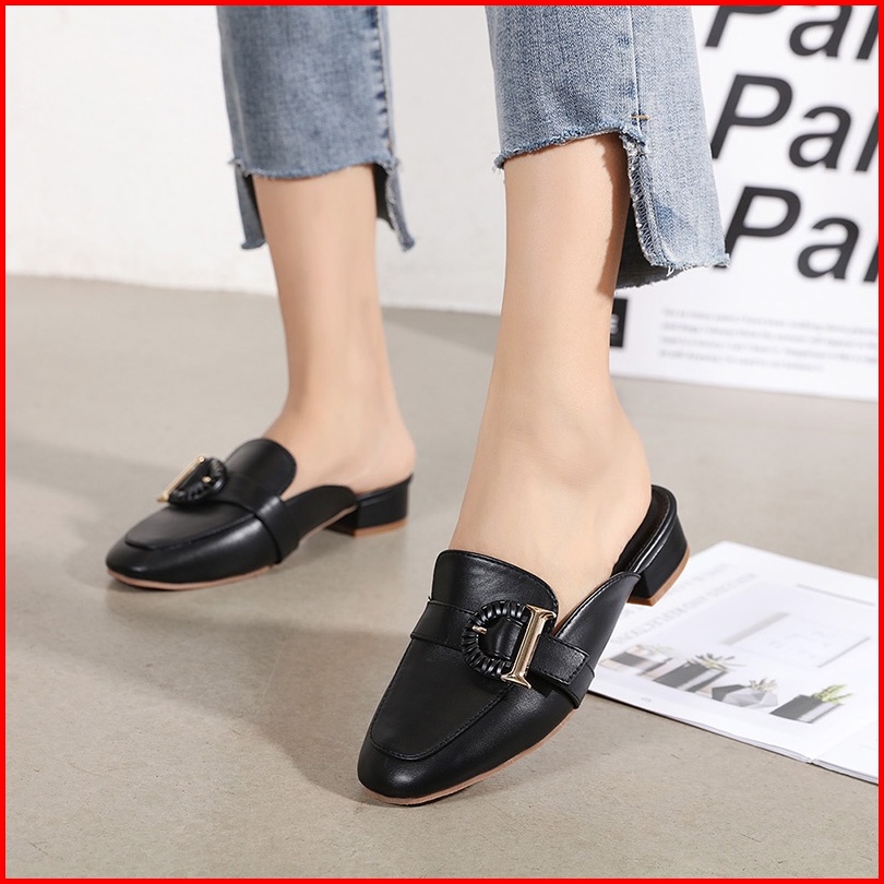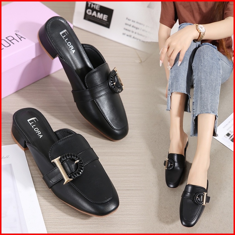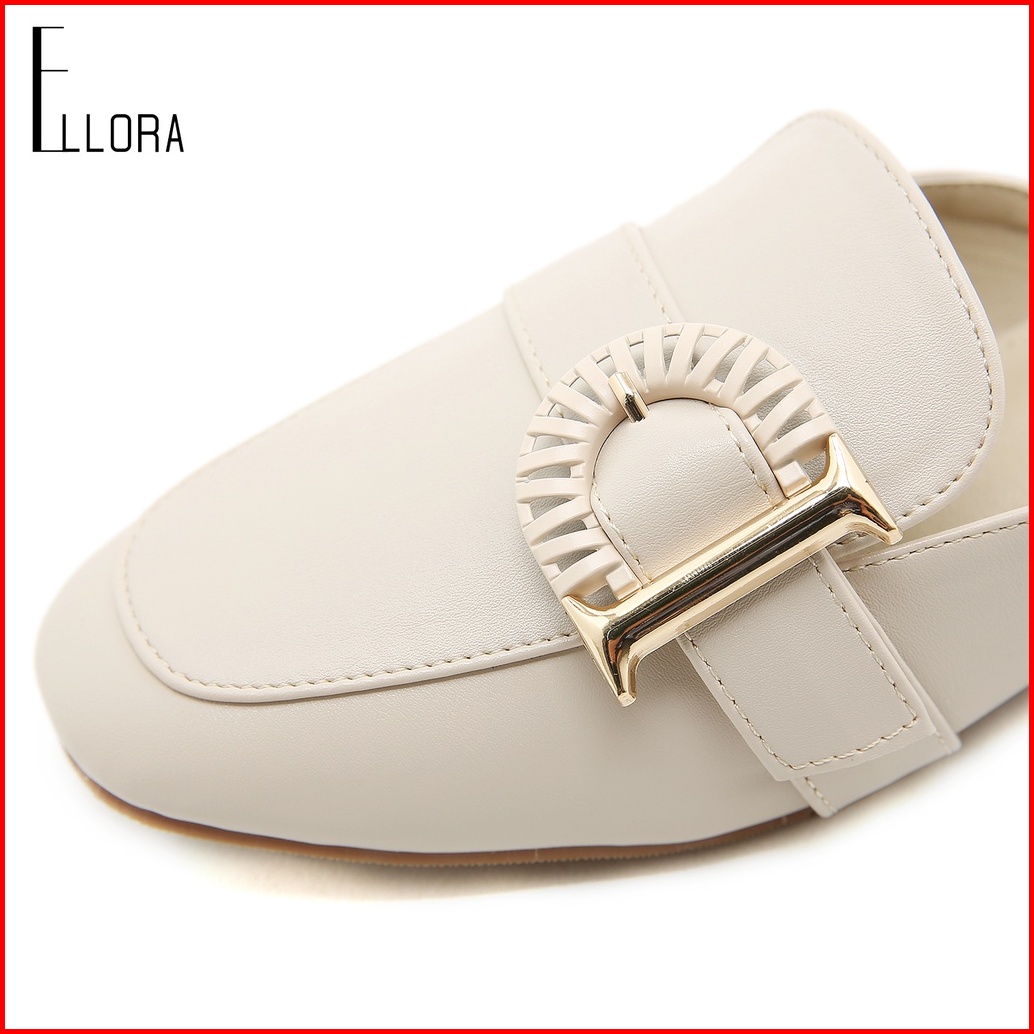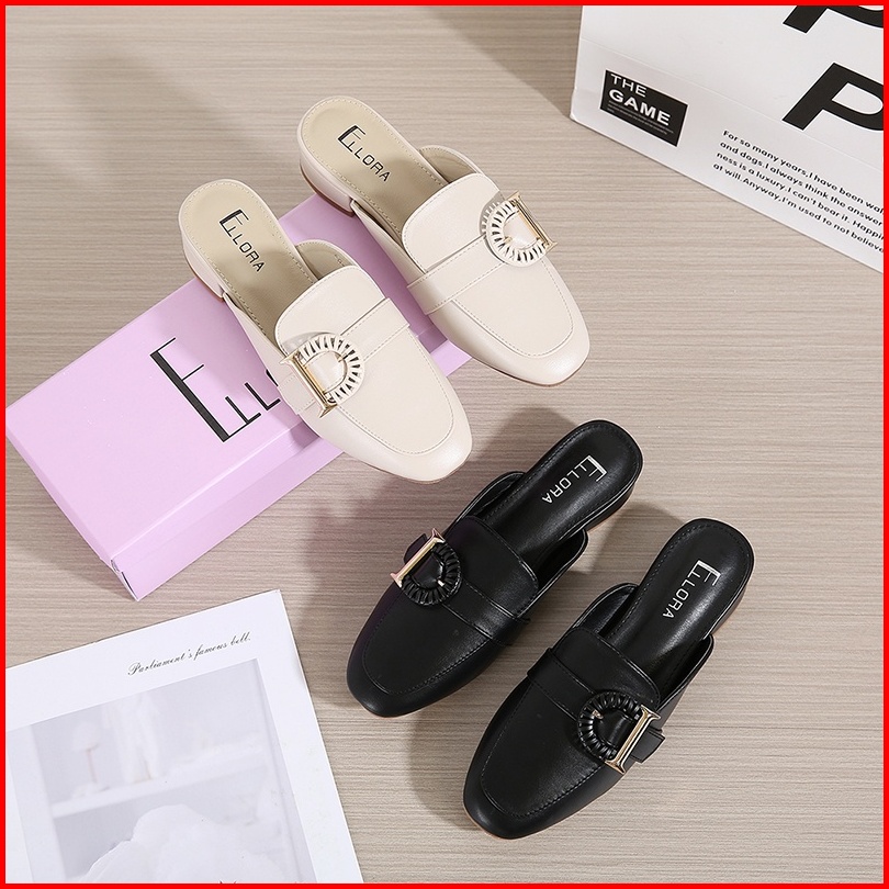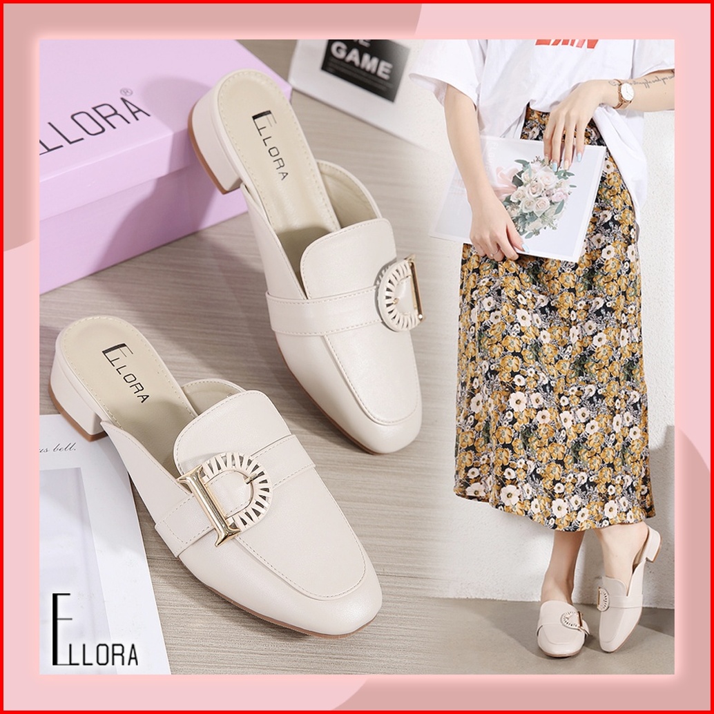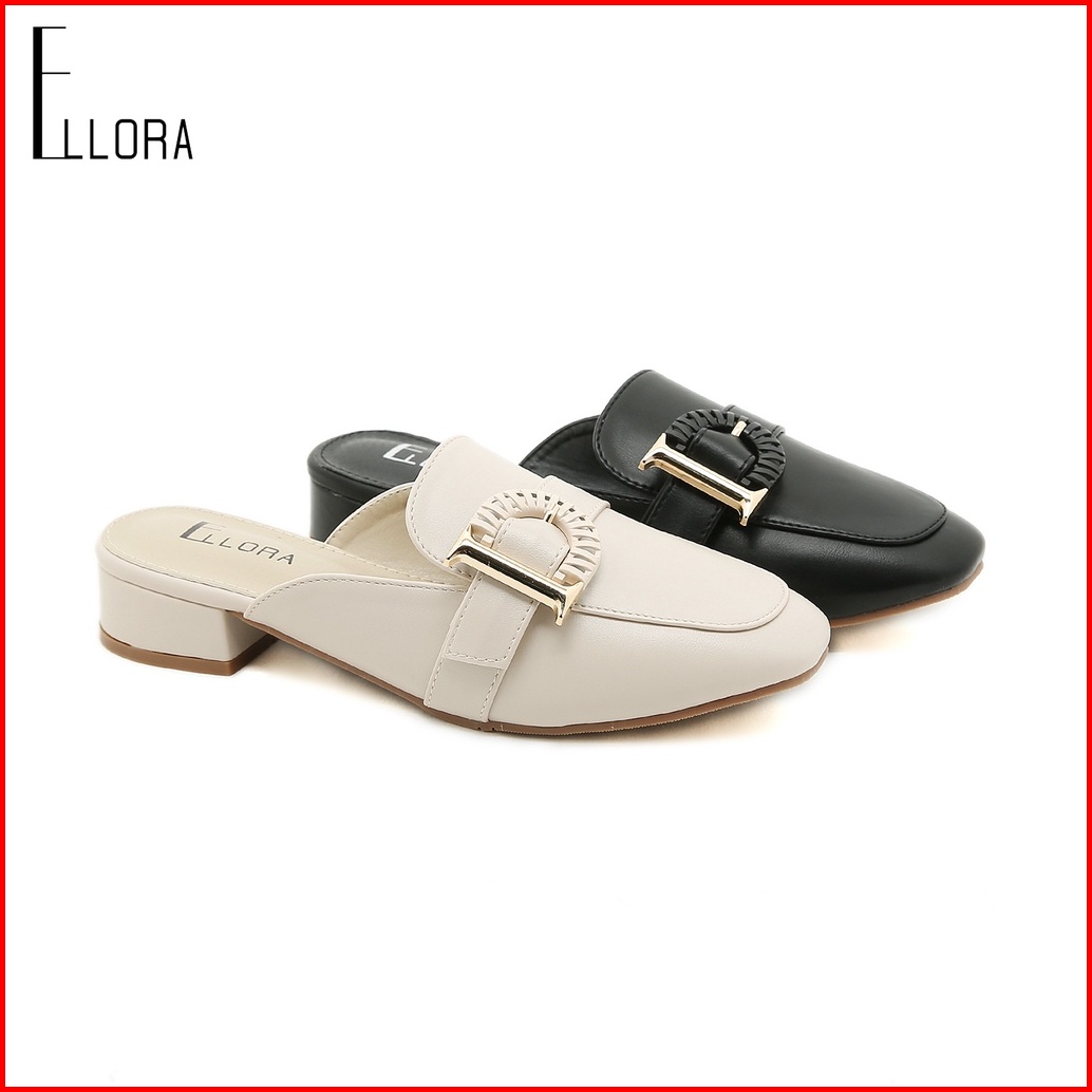 Ellora Eg-7166 Sandal Wanita Hak Chunky 3.5cm Mules Bahan Sintetis Import