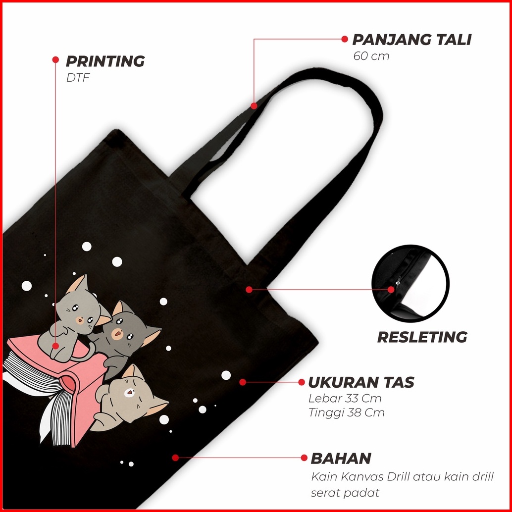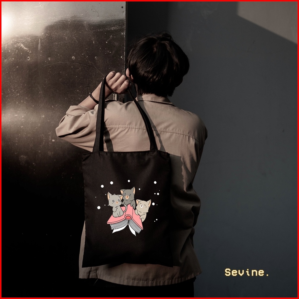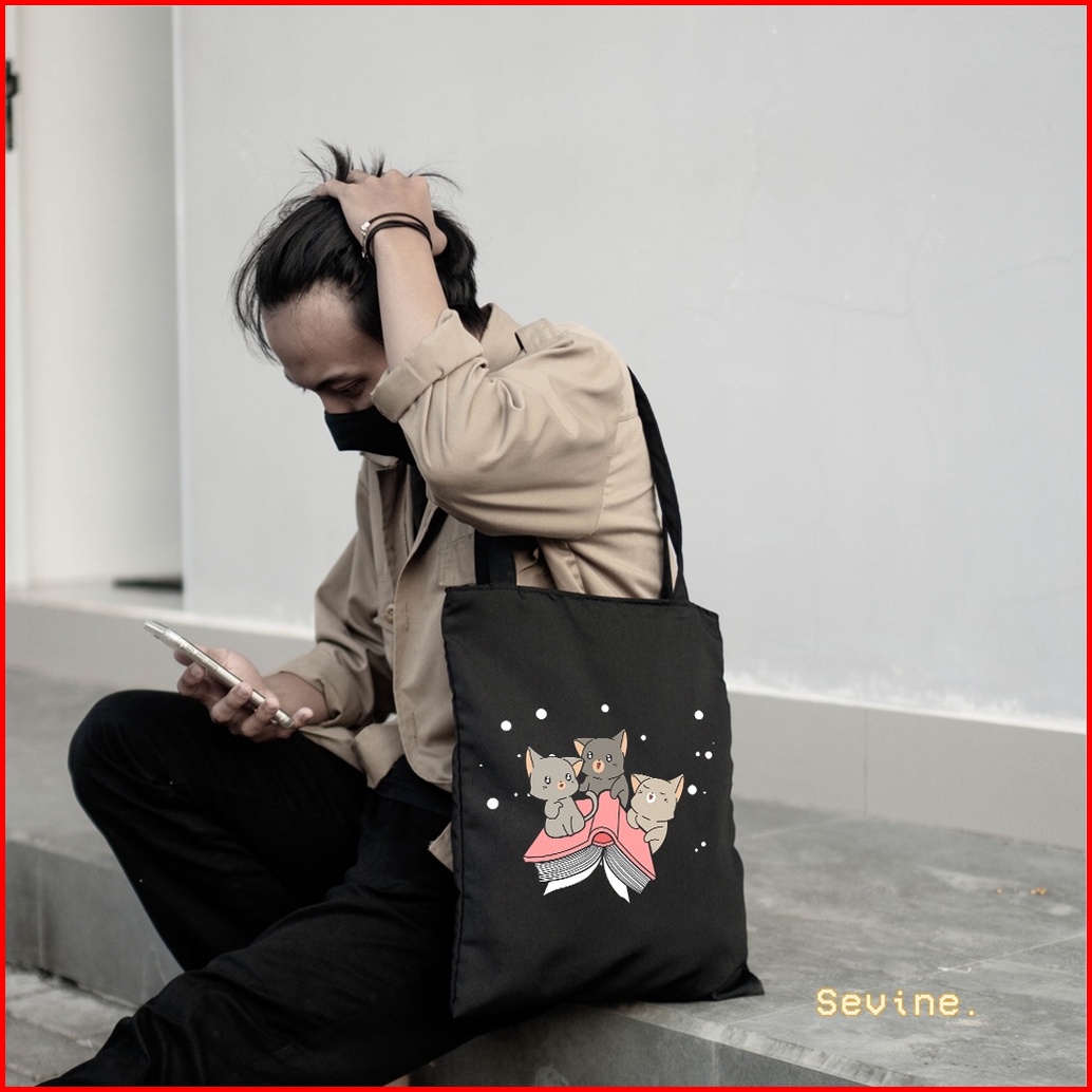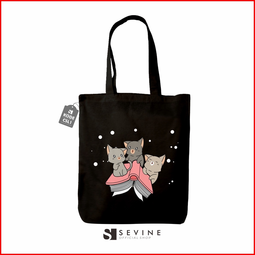 Sevine Totebag Tas Wanita Tote Bag Resleting Cute Cat Black Series - Csl1