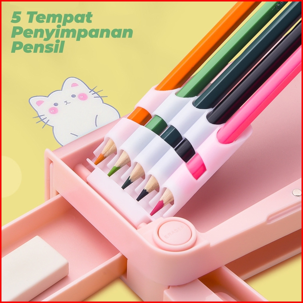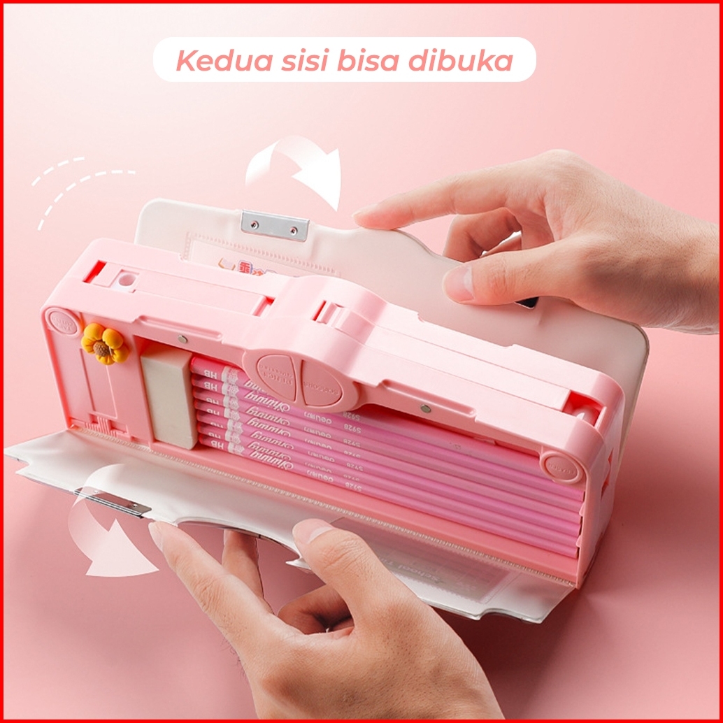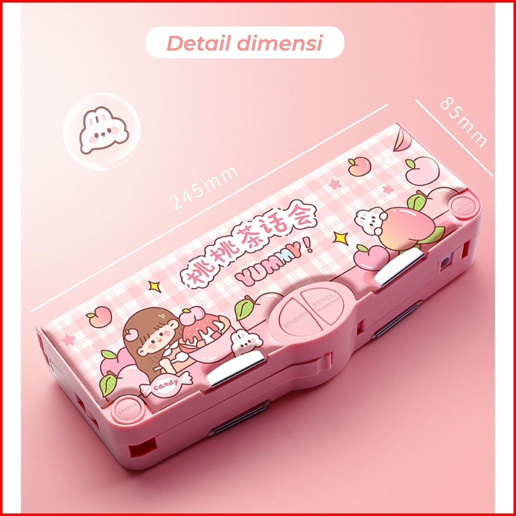 Sni Kotak Alat Tulis Kotak Pensil Pola Kartun Rautan Kapasitas Tempat Pensil Dua Lapis Bahan Plastik Multifungsi