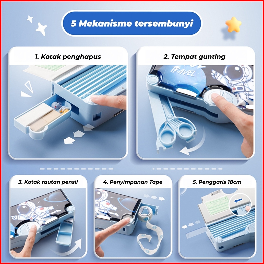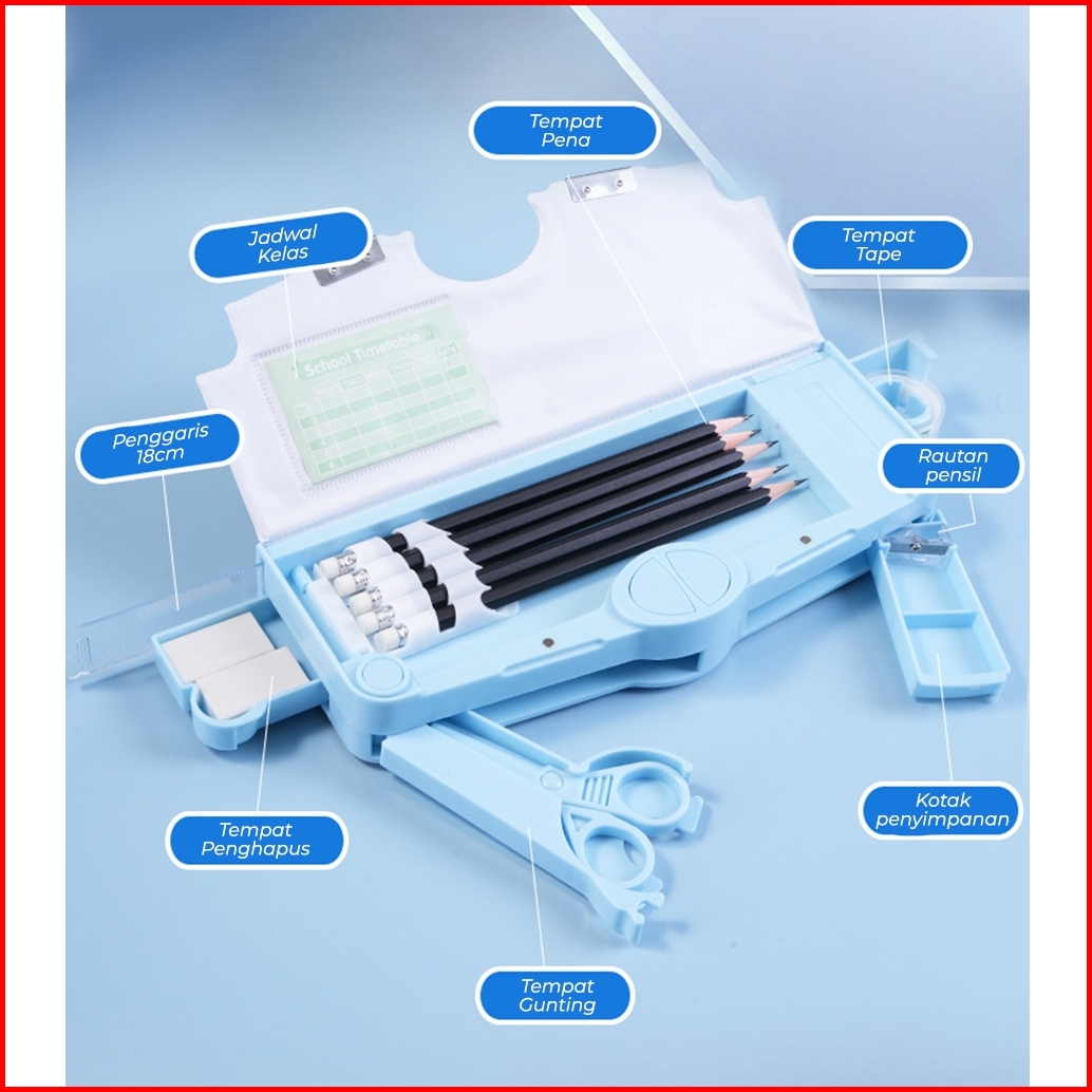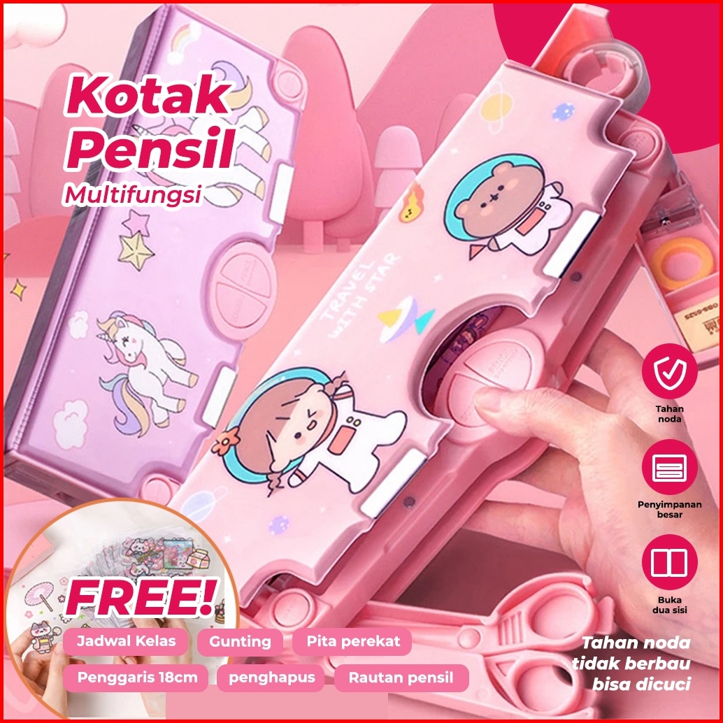Sni Kotak Alat Tulis Kotak Pensil Pola Kartun Rautan Kapasitas Tempat Pensil Dua Lapis Bahan Plastik Multifungsi