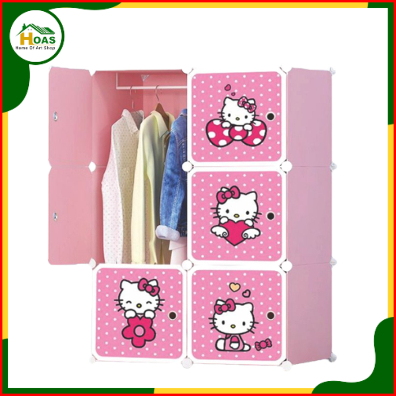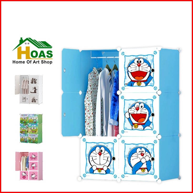 Hoas Lemari Pakaian Rakit Plastik 6 Pintu Lemari Portable Rak Baju Gantungan