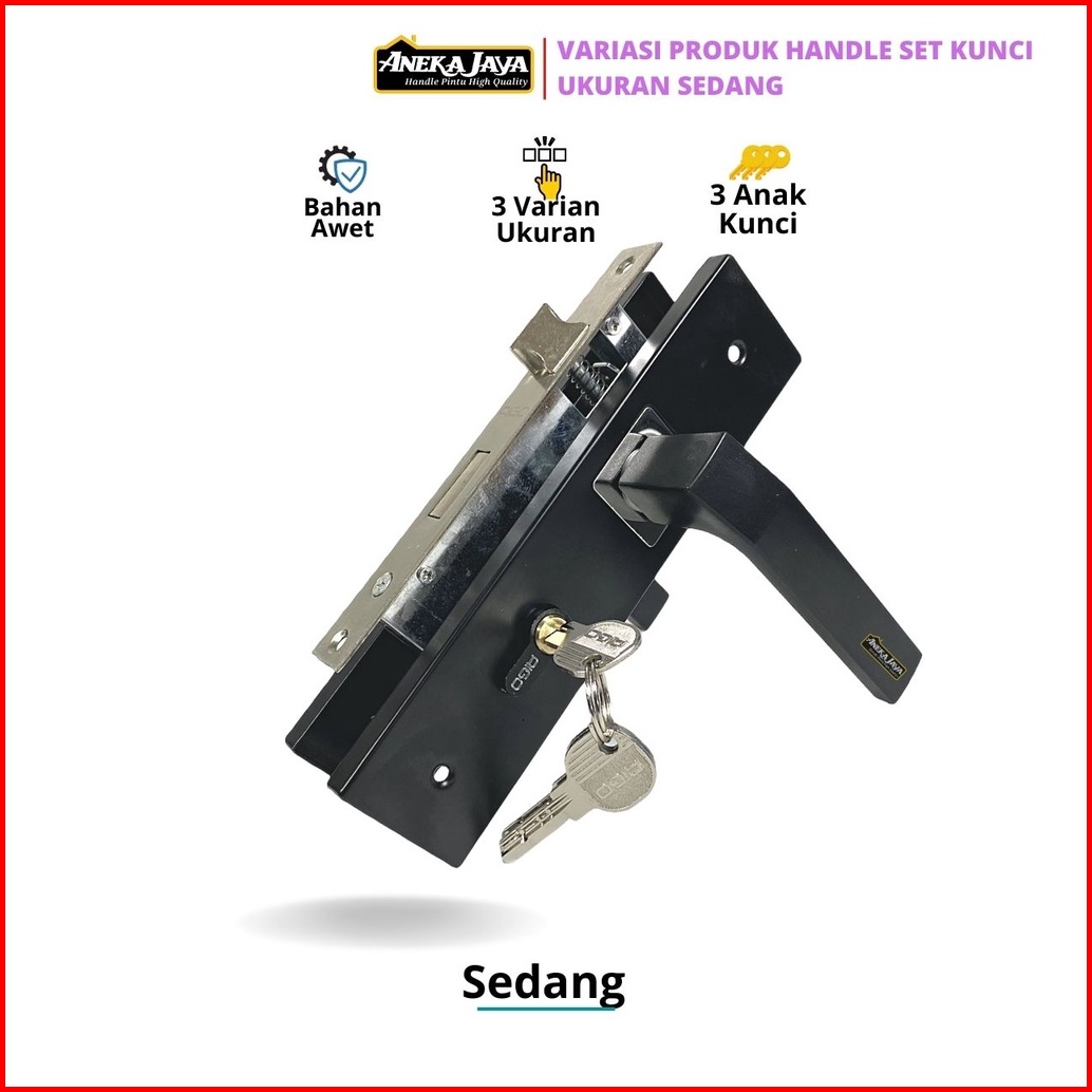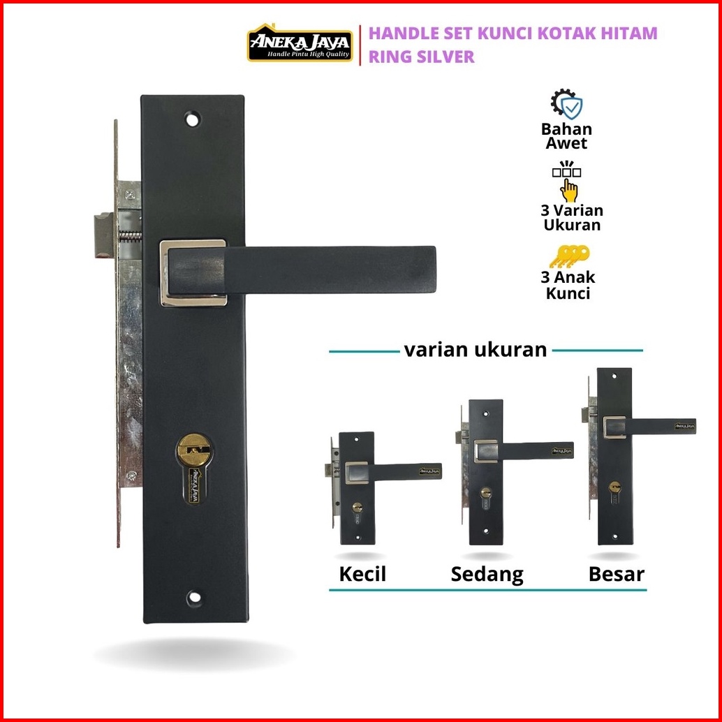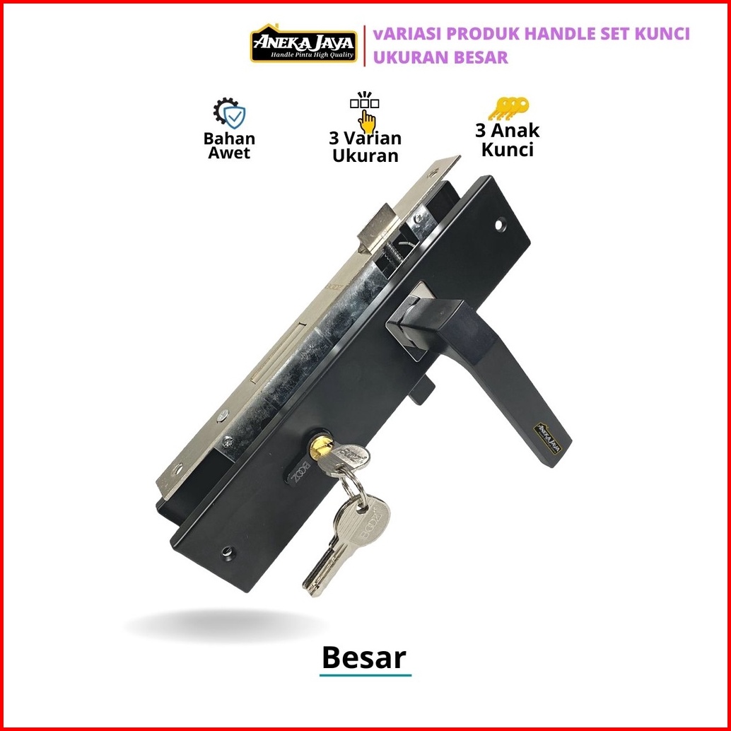 Kunci Pintu Rumah Set Handle Hitam Ukuran Besar Sedang Kecil - Gagang Minimalis Kamar Utama