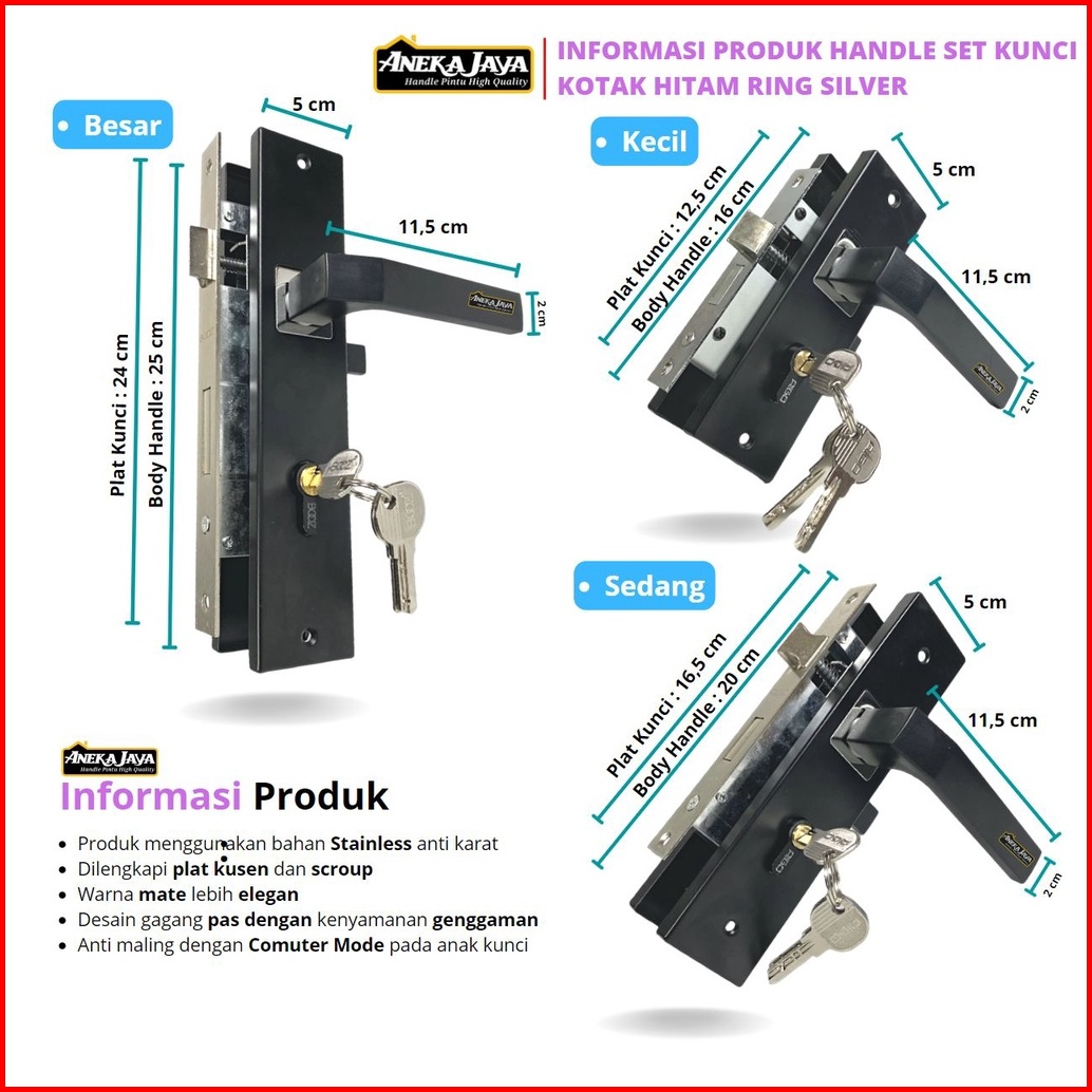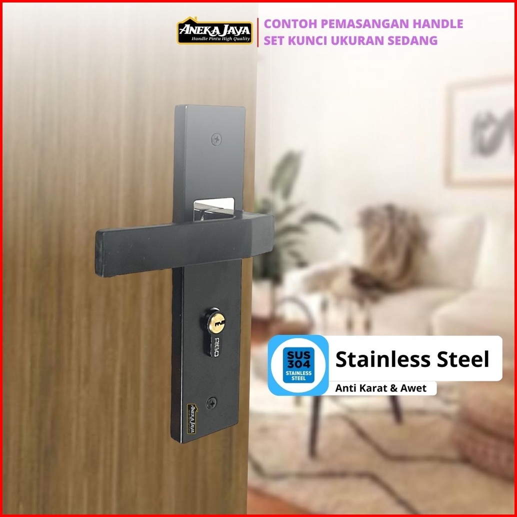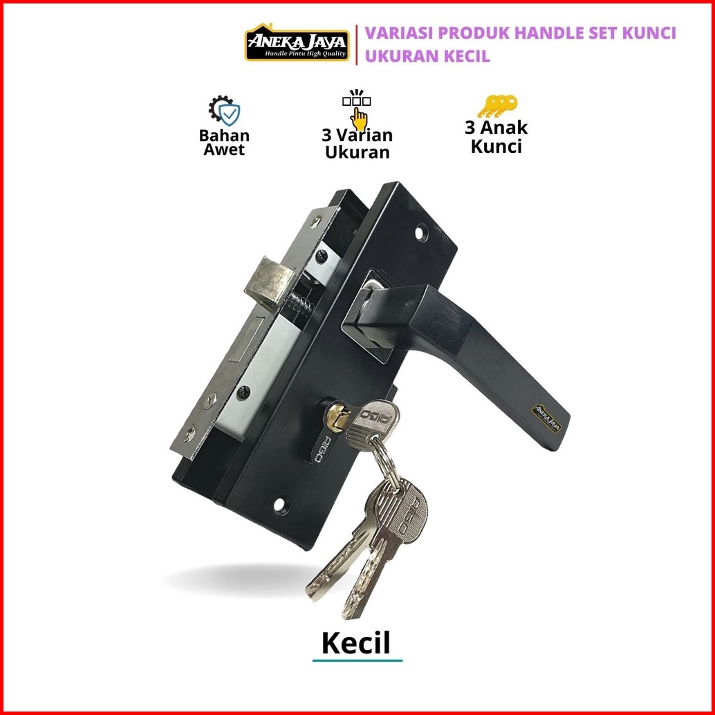 Kunci Pintu Rumah Set Handle Hitam Ukuran Besar Sedang Kecil - Gagang Minimalis Kamar Utama